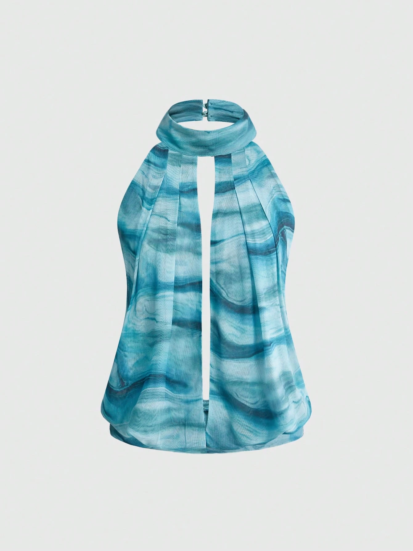 ROMWE Avant Top de tirantes con cuello profundo drapeado y estampado de olas de océano para primavera/verano y vacaciones
