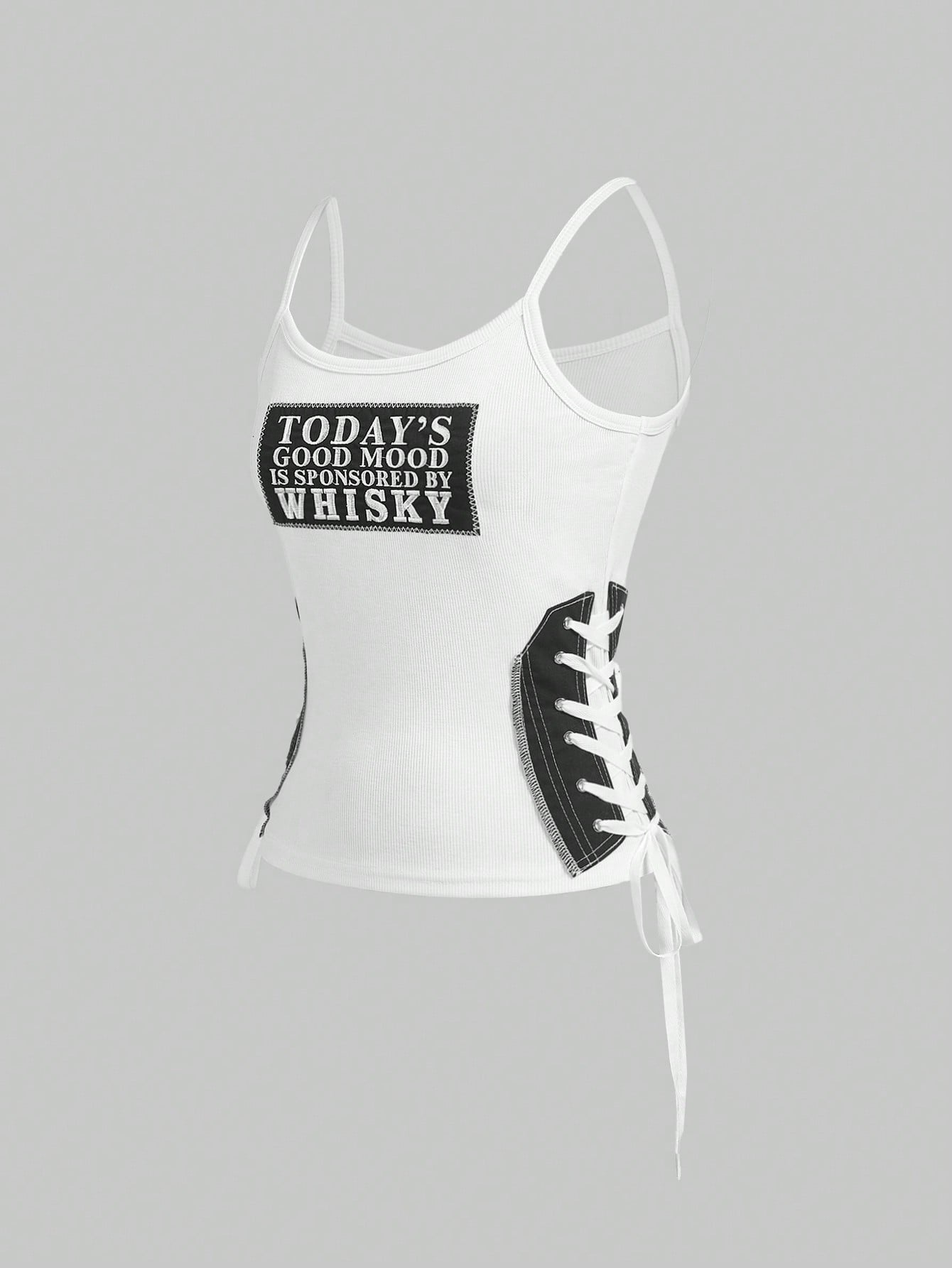 ROMWE Avant Zapatillas deportivas vintage Y2K de primavera/verano para mujer, con gráficos, top sin mangas con aplicación de letras de color contrastante