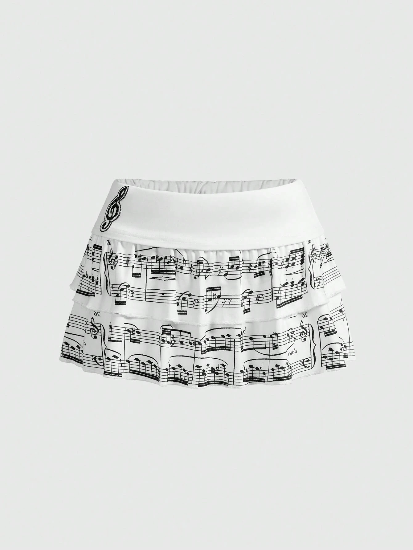 ROMWE Avant Minifalda con estampado de notas musicales vintage Y2K en capas