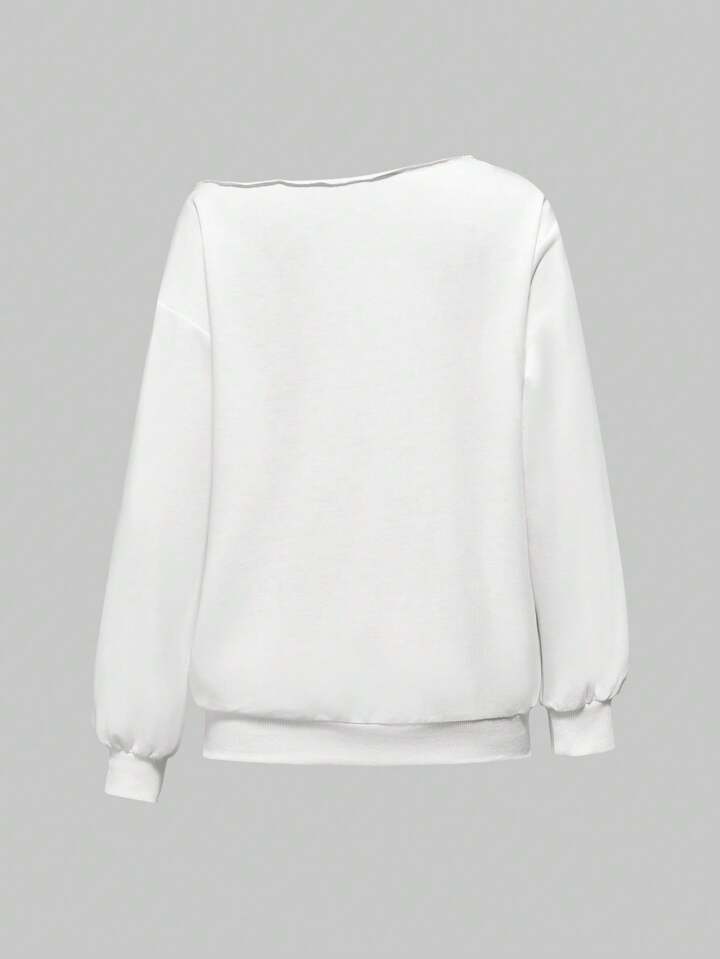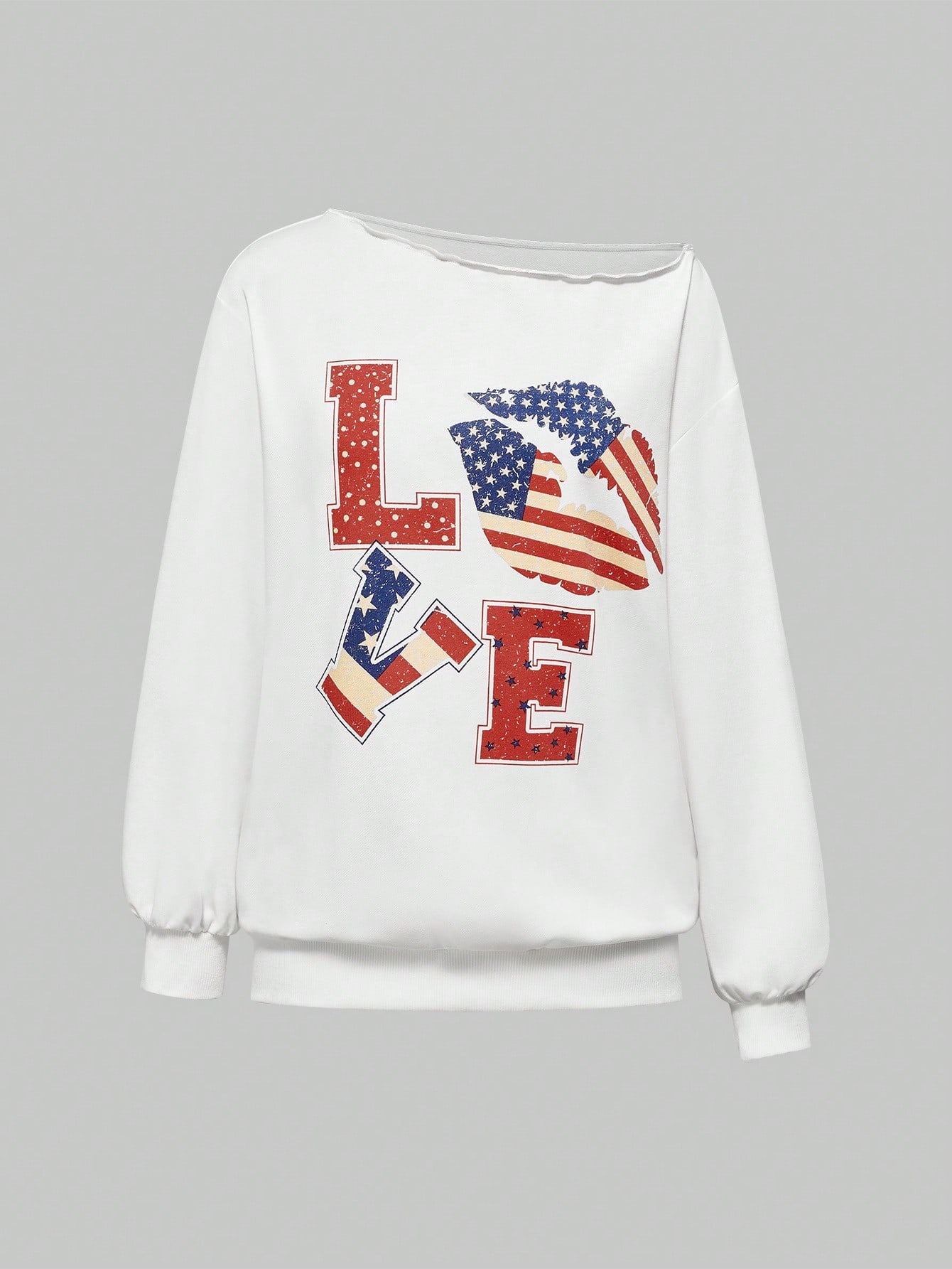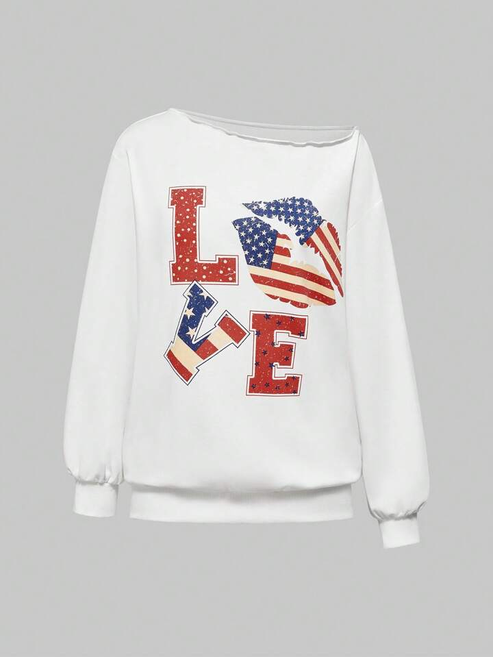 ROMWE Avant Sudadera con estampado asimétrico de hombro de bandera, labios y la palabra "LOVE", ideal para graduación, regreso a la escuela, maestros