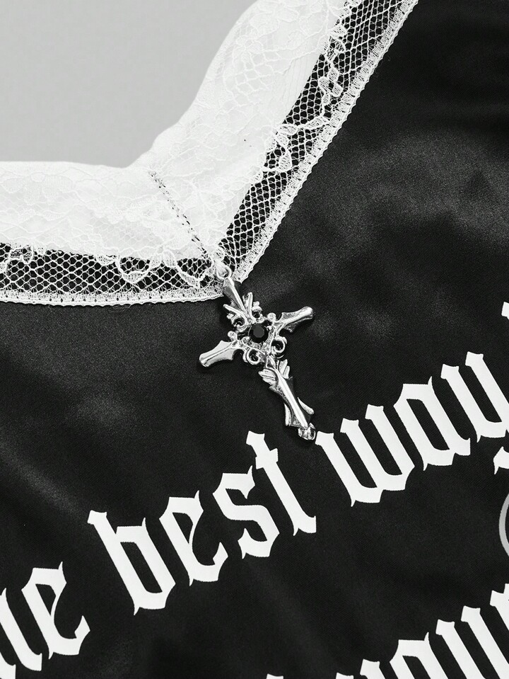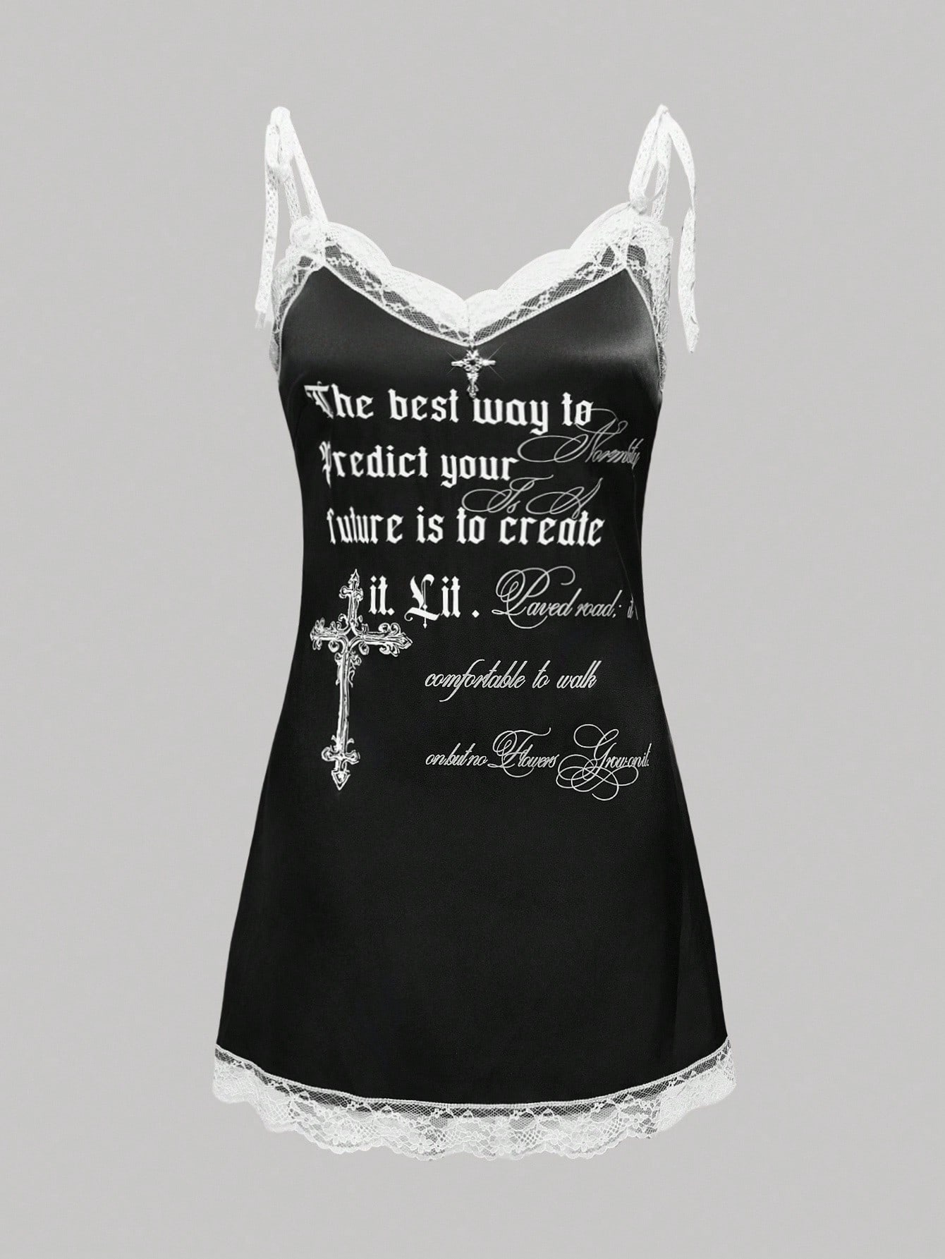 ROMWE Avant Vestido mini de satén con estampado de cruz de ángel para mujer