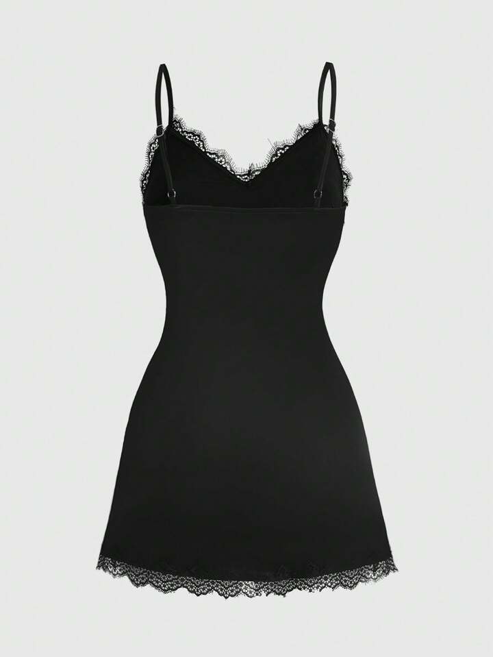 ROMWE Avant Vestido mini de satén con estampado de letra y collar de cruz para mujer