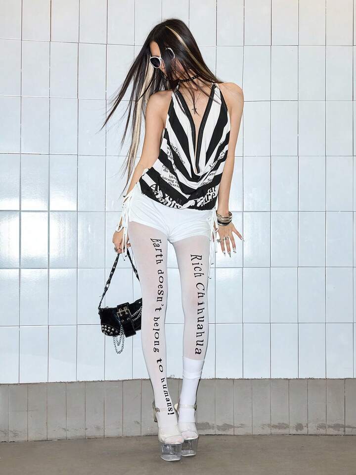 ROMWE Avant Camiseta de tirantes con espalda descubierta, estampado de eslogan y rayas de contraste, de moda sexy para mujer
