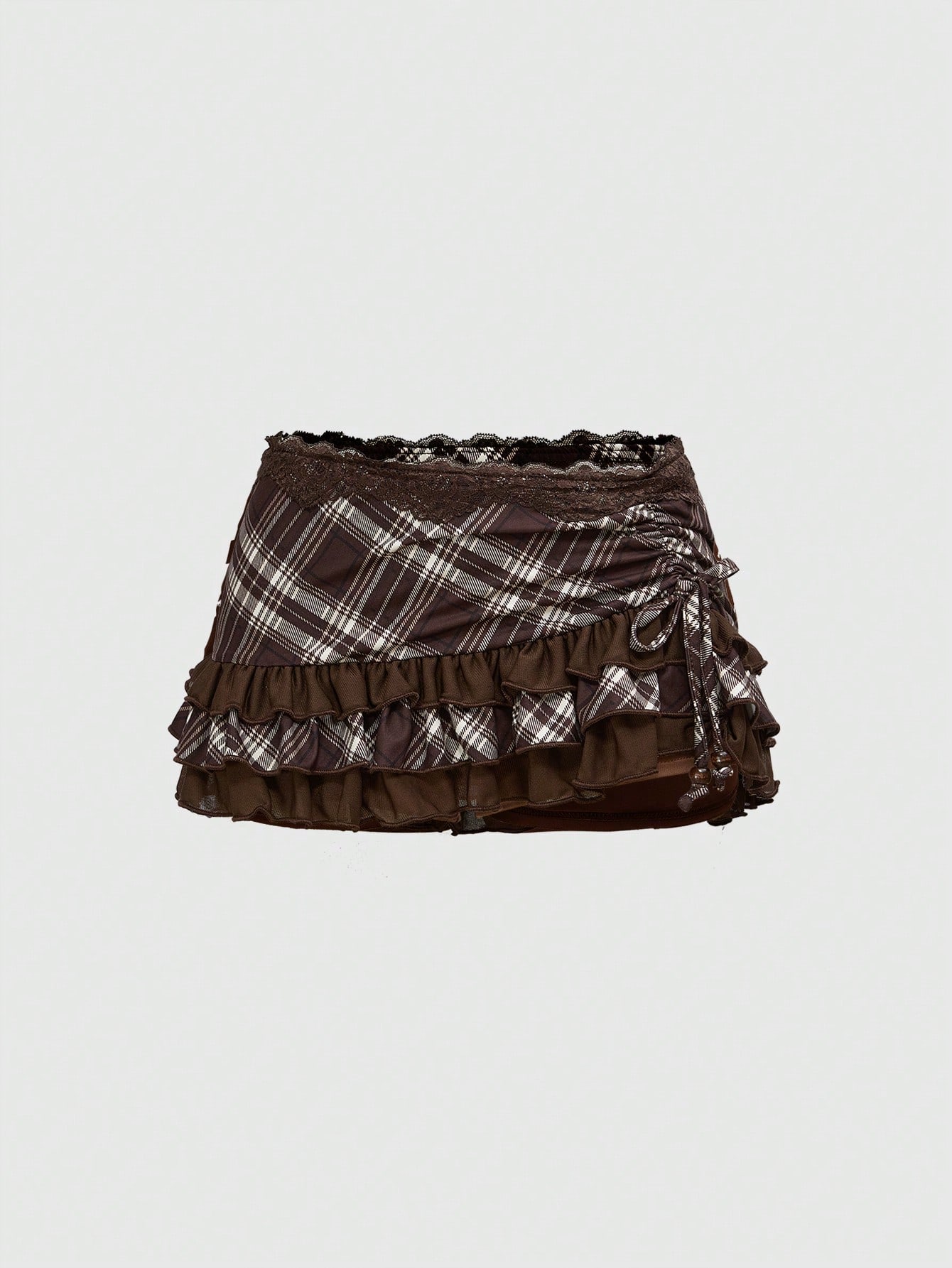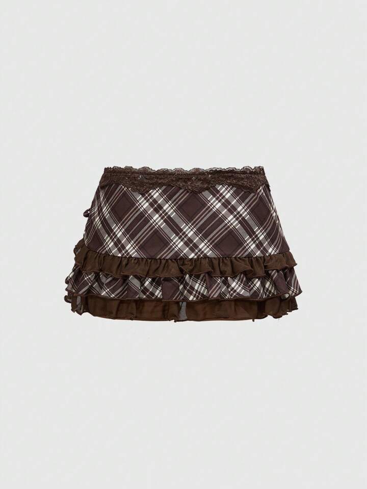 ROMWE Avant Minifalda asimétrica de mujer con estampado retro, estilo universitario, de encaje y parches