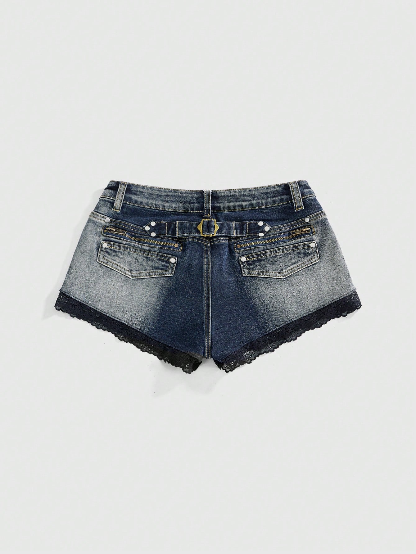 ROMWE Avant Shorts vaqueros de cintura ultra baja con decoración de cremallera, estilo vintage Y2K para mujer