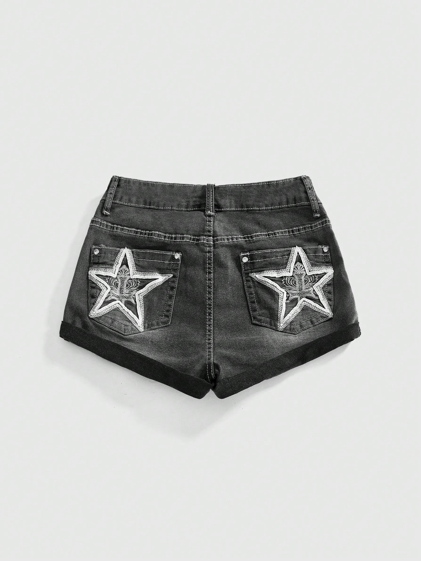 ROMWE Avant Shorts vaqueros con estampado de estrellas estilo Y2K para mujer