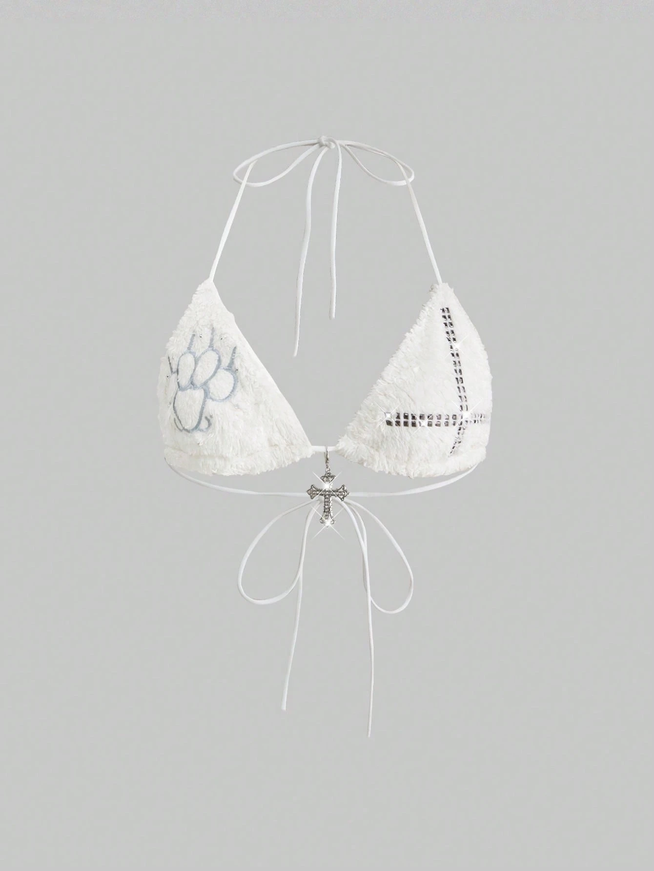 ROMWE Avant Camiseta de bikini con bordado de diamantes de imitación, tachuelas y diseño cruzado sexy de estilo Y2K para otoño/invierno