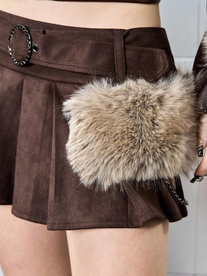 ROMWE Avant Minifalda de mujer con parches de piel sintética, plisada, de cintura ultra baja, con estilo americano desgastado de la era Y2K