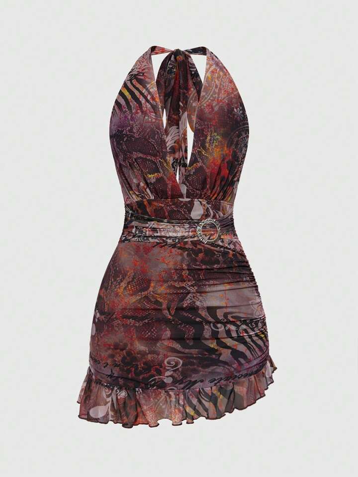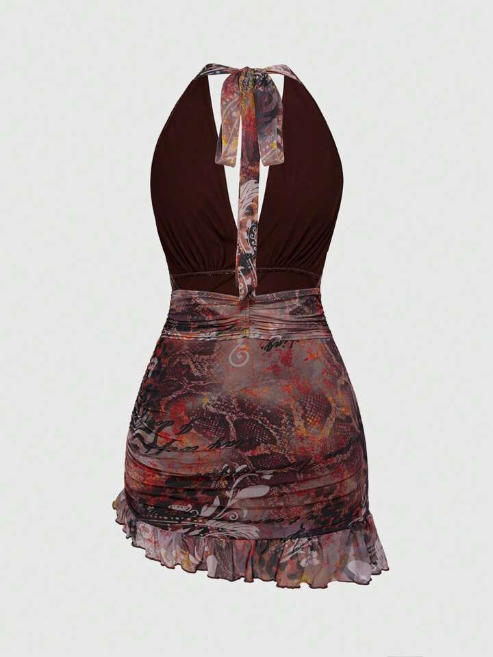 ROMWE Avant Vestido mini con escote pronunciado y espalda descubierta con estampado de leopardo en estilo Y2K para usar en vacaciones