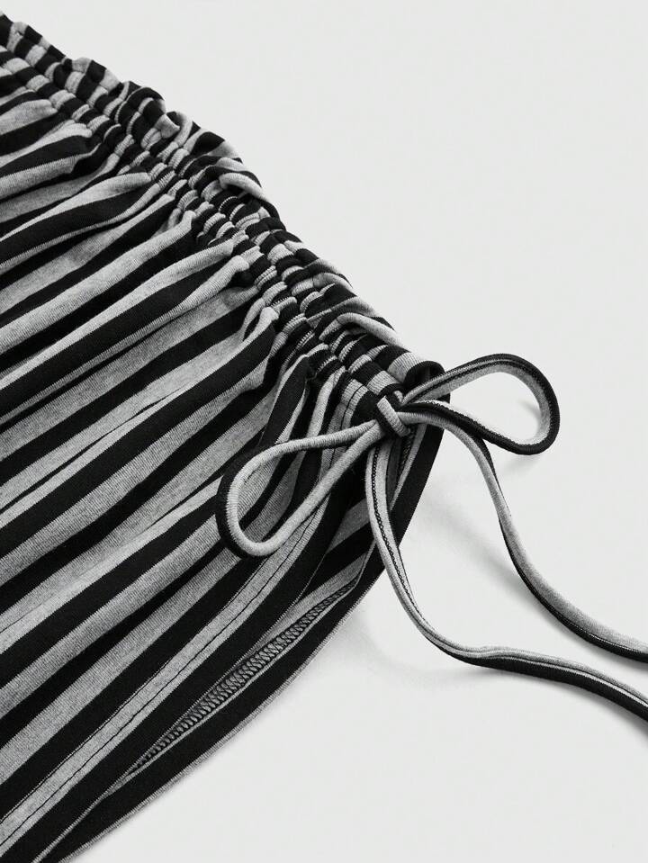 ROMWE Avant Vestido mini ajustado con hombros descubiertos y cordón de estilo Y2K