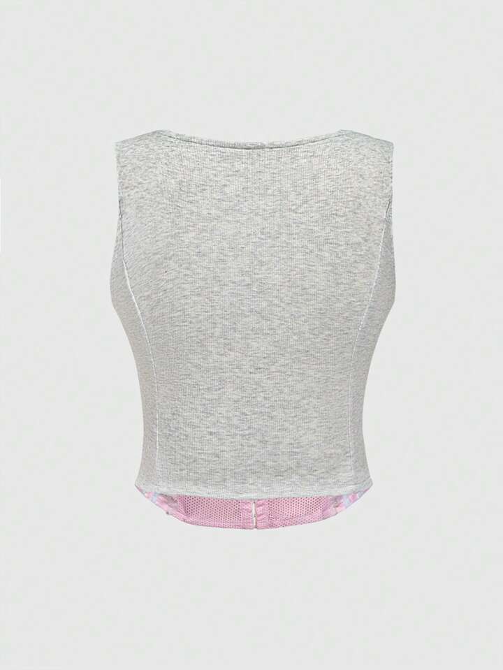 ROMWE Avant Top deportivo con estampado numérico de leopardo, encaje a contraste y color rosa estilo Y2K