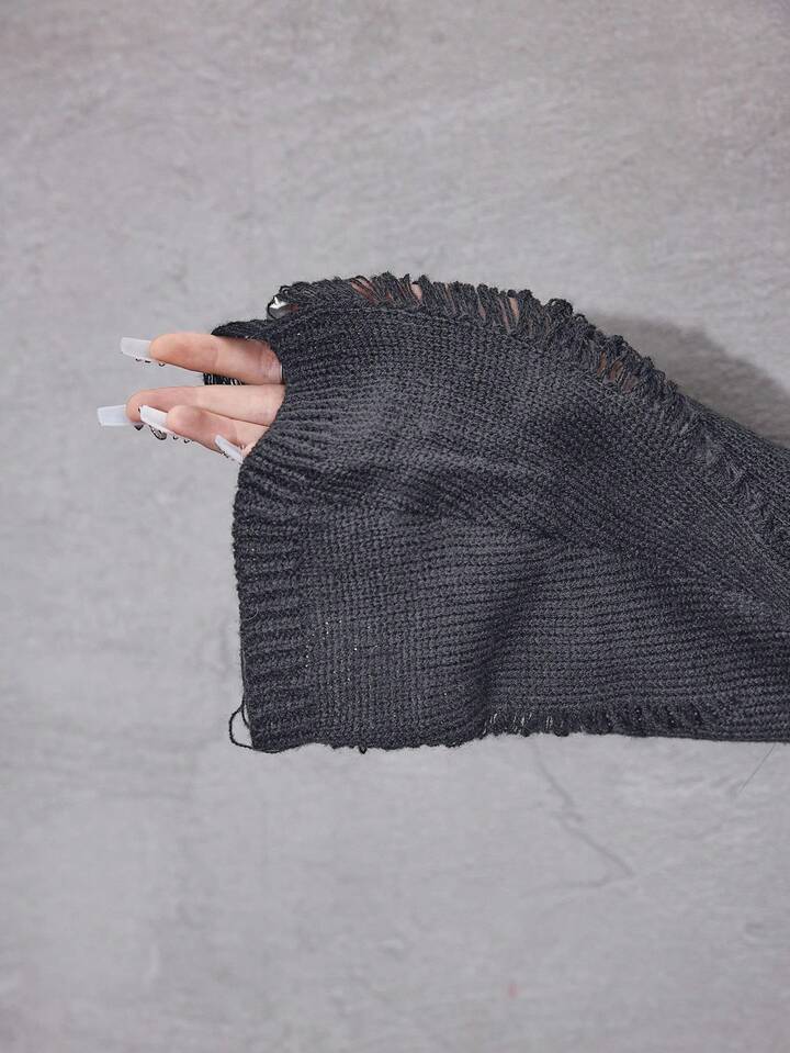 ROMWE Avant Suéter con un hombro, mangas acampanadas, diseño rasgado, cintura ceñida y acentos de ojetes metálicos con estilo punk Y2K
