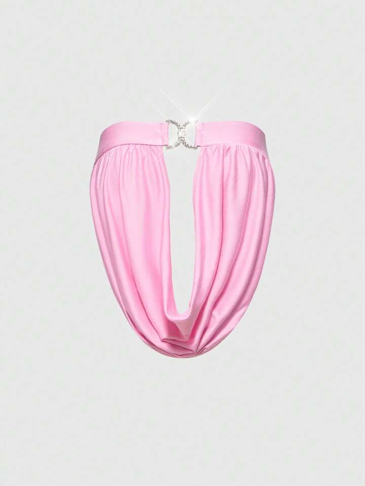 ROMWE Avant Top corto con escote profundo y decoración de rhinestones en color rosa para mujeres, con estilo retro Y2K