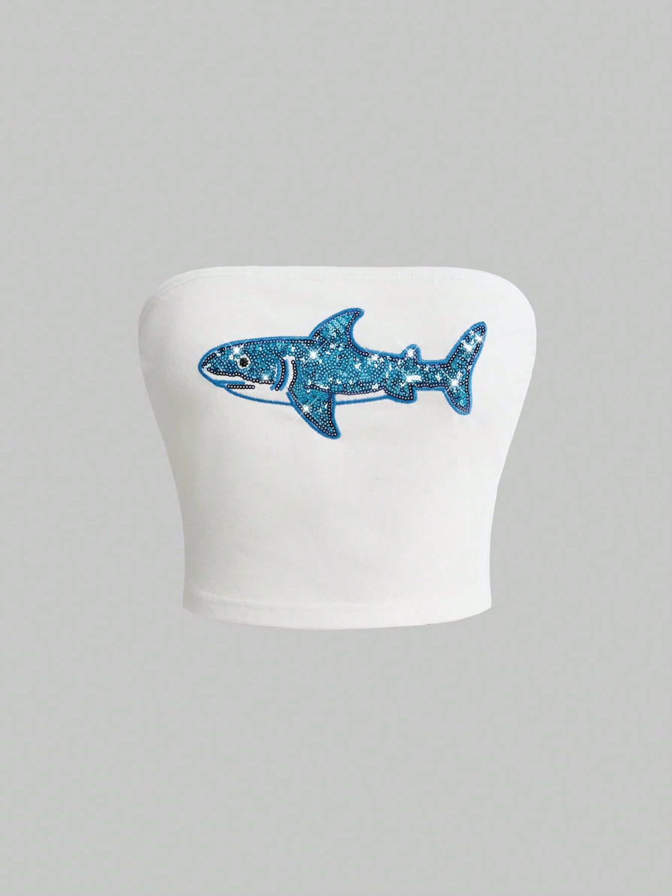 ROMWE Avant Top corto con escote tipo bustier con bordado de cuentas con diseño de tiburón estilo Y2K