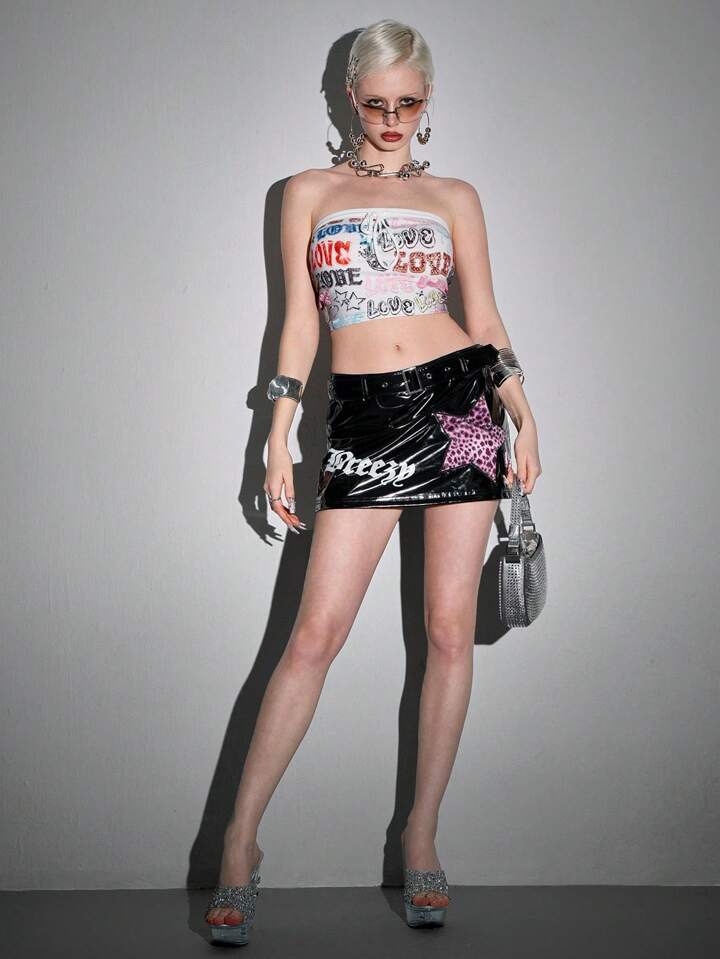 ROMWE Avant Falda mini de cintura baja con estampado de leopardo y estrellas, estilo subcultura Y2K
