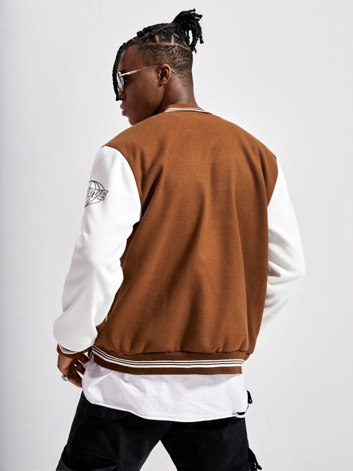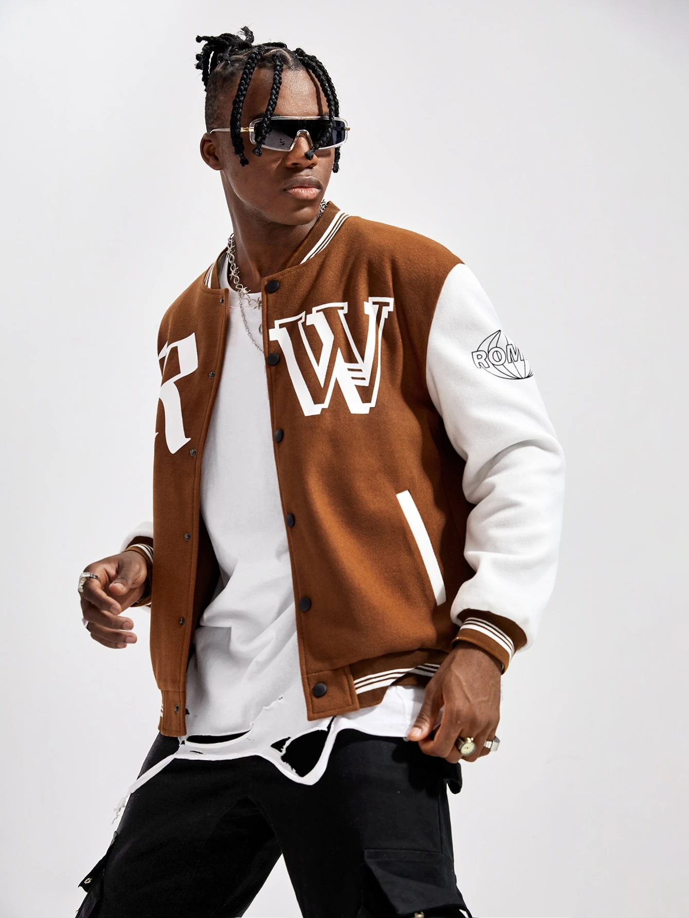 ROMWE Limited Hombres Cazadora de universidad con letra de color combinado con botón delantero