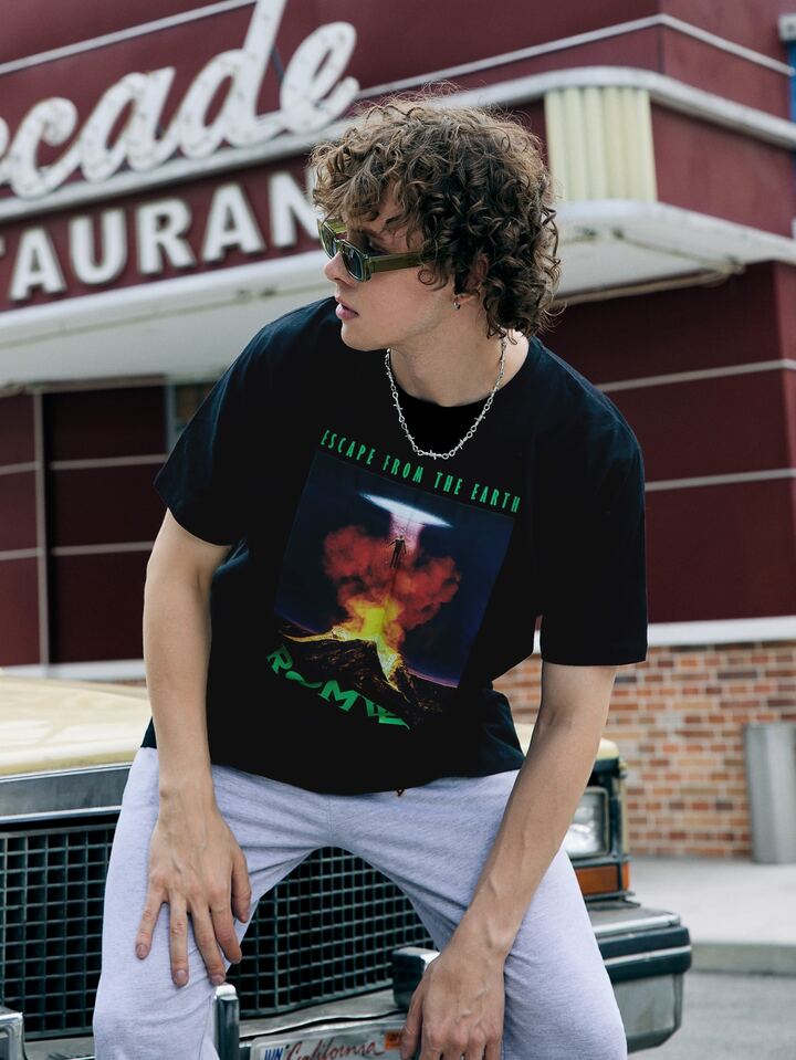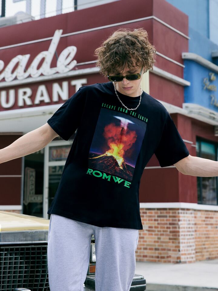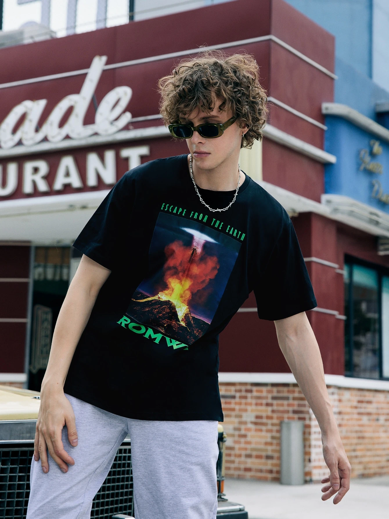 ROMWE Limited Camiseta con estampado de letra y volcán