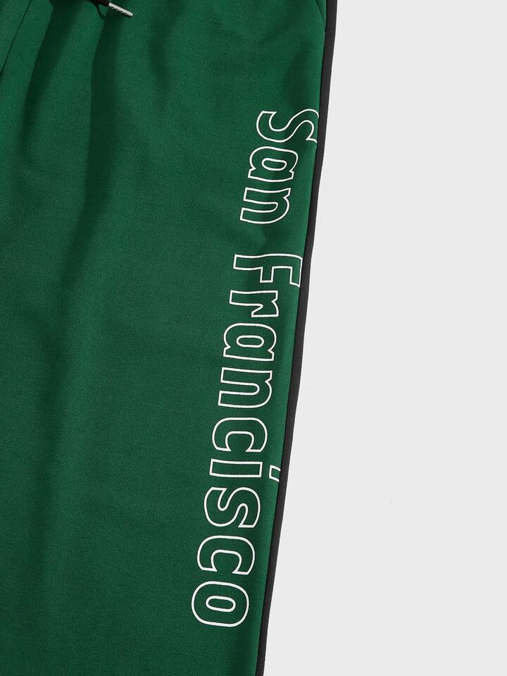 ROMWE UNISEX 1 pieza Pantalones deportivos con estampado de letra de cintura con cordón