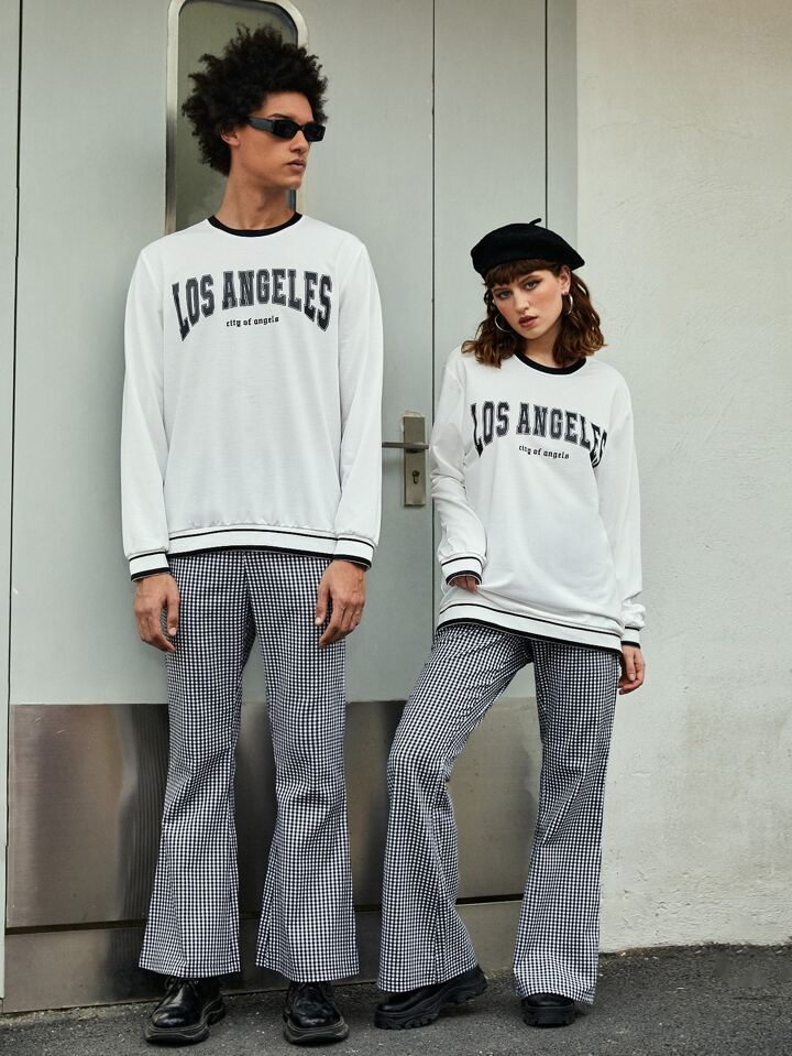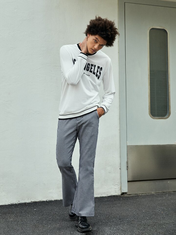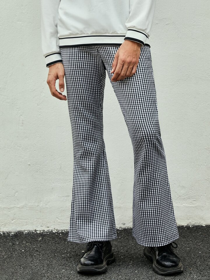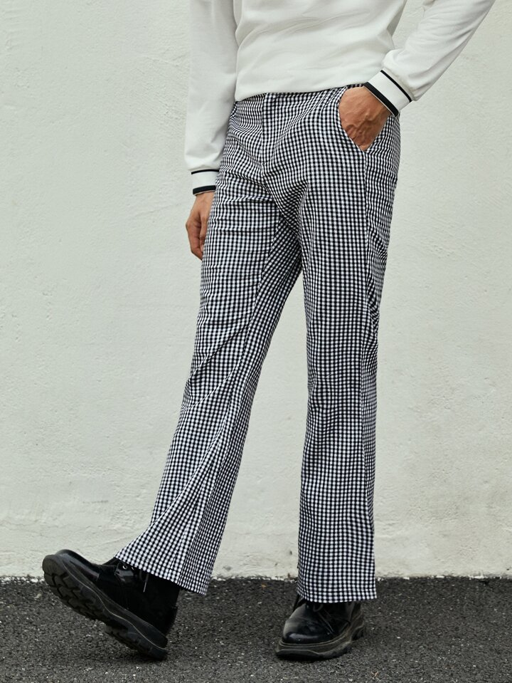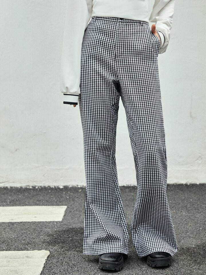 ROMWE UNISEX 1 pieza Pantalones de traje con estampado de cuadros con bolsillo oblicuo