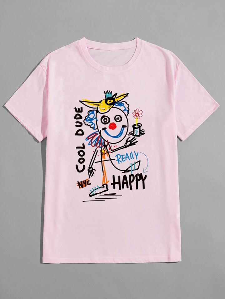 ROMWE UNISEX Hombres Camiseta con letra con estampado de dibujos animados