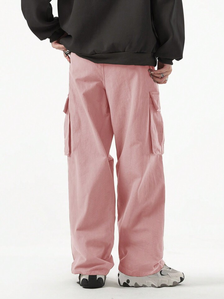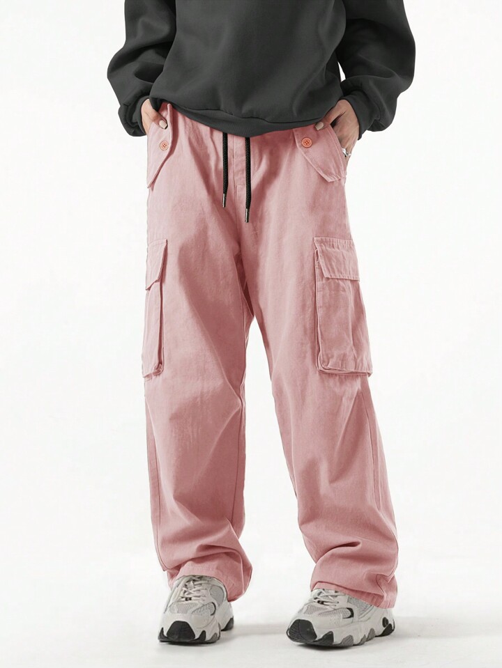 ROMWE UNISEX Pantalones de carga rectos de unicolor y casual con cordón en la cintura para hombres
