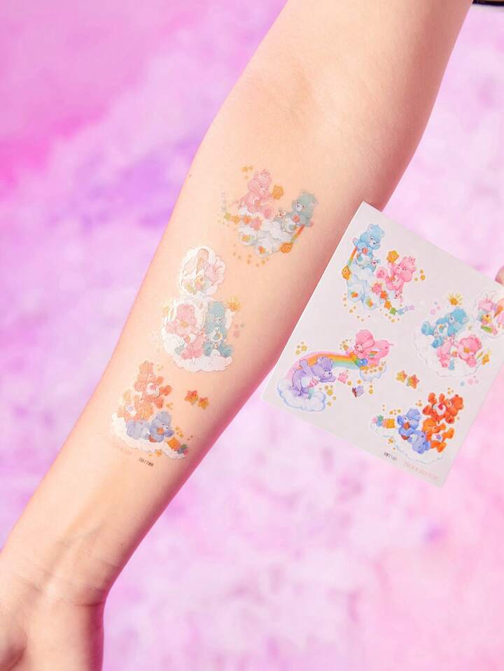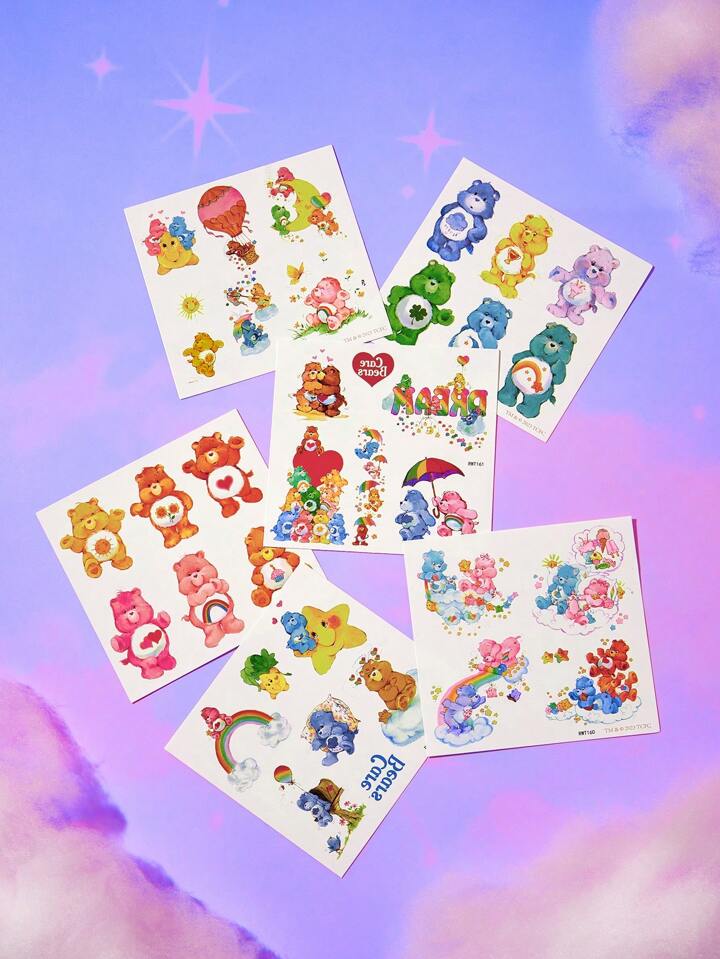 ROMWE X Care Bears 6 hojas de pegatinas de tatuaje con gráfico de dibujos animados