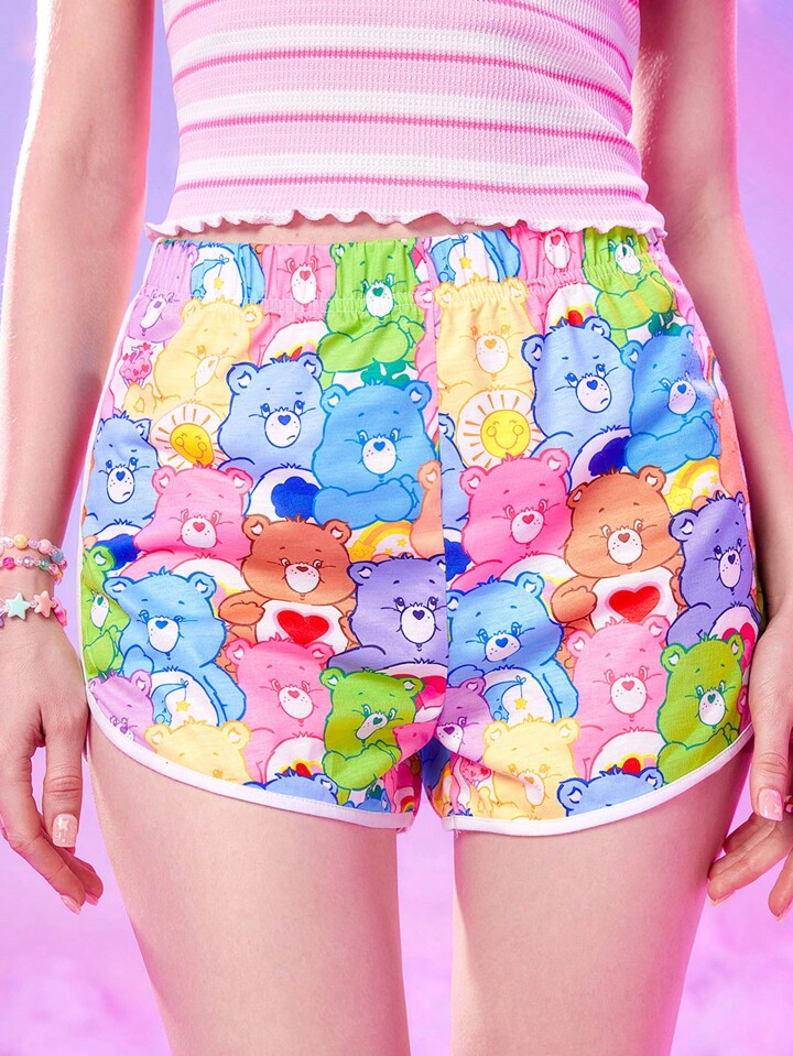 ROMWE X Care Bears Shorts con estampado de dibujos animados unido en contraste