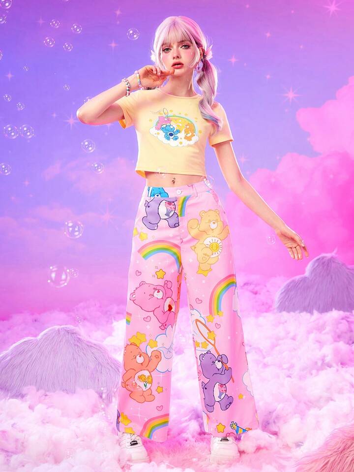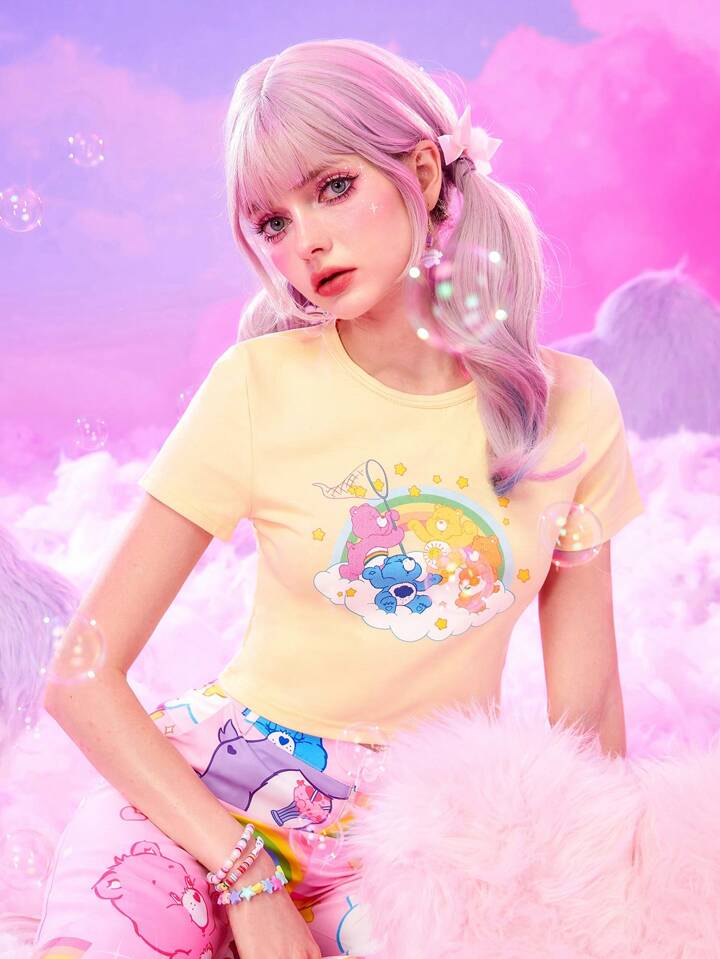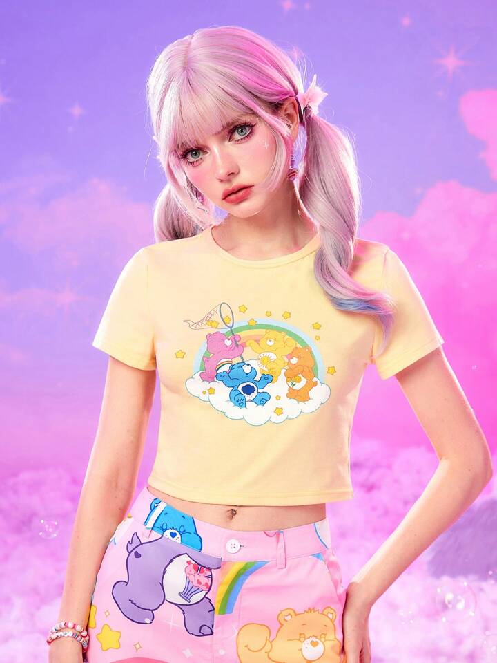 ROMWE X Care Bears Camiseta crop con estampado de dibujos animados