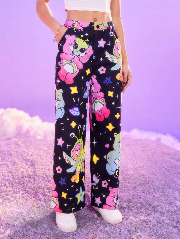 ROMWE X Care Bears Pantalones De Pierna Ancha Con Gráficos De Dibujos Animados