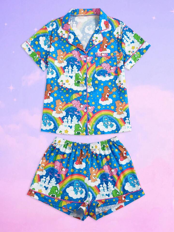 ROMWE X Care Bears Conjunto de pijama con estampado de dibujos animados, para la escuela