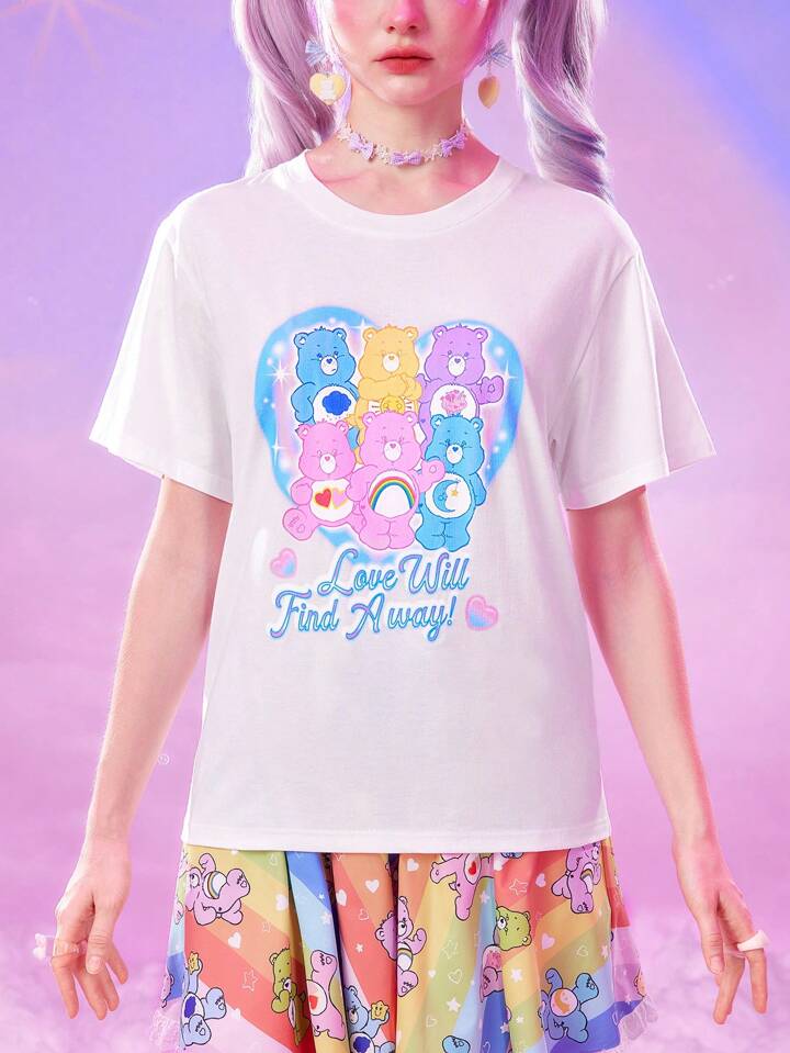 ROMWE X Care Bears Camiseta de manga corta para mujer con gráfico de oso de peluche con forma de corazón linda