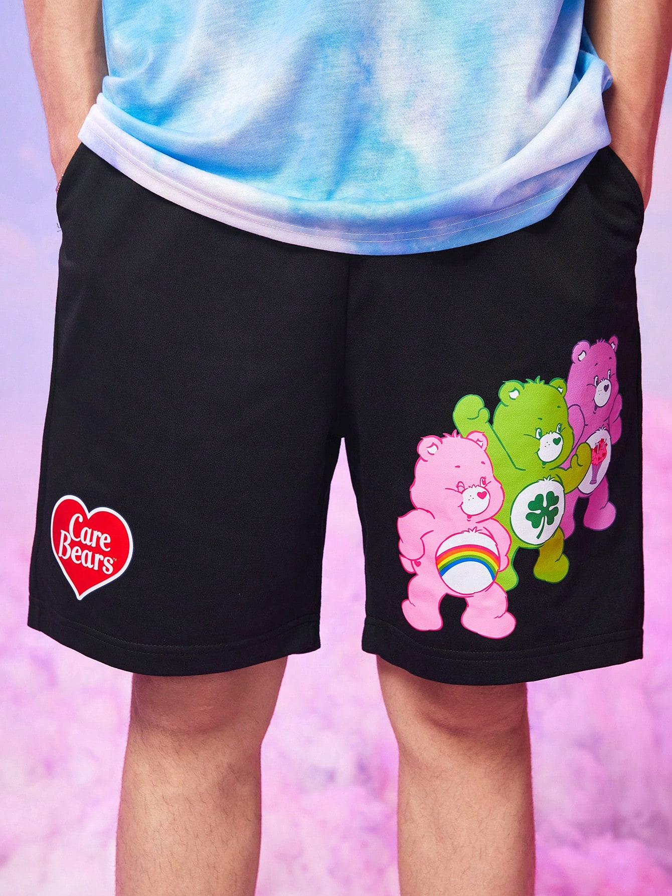 ROMWE X Care Bears Hombres Shorts con estampado de dibujos animados de cintura con cordón