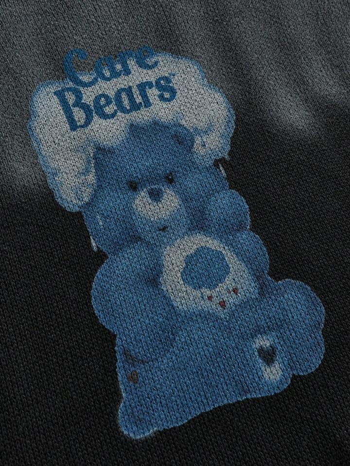 ROMWE X Care Bears Jersey holgado de punto con hombros caídos, estampado de oso de dibujos animados y degradado, para hombre, para otoño e invierno