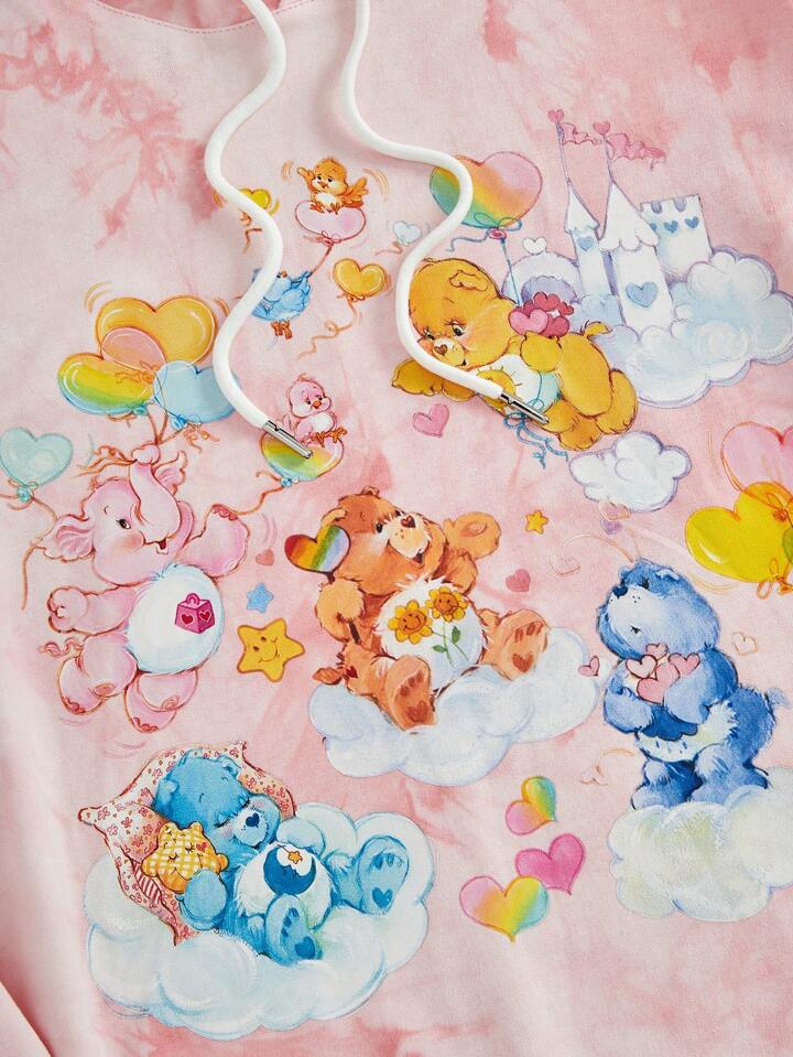 ROMWE X Care Bears Sudadera De Talla Grande Con Imagen De Dibujos Animados, Hombros Caídos Y Capucha Con Cordón