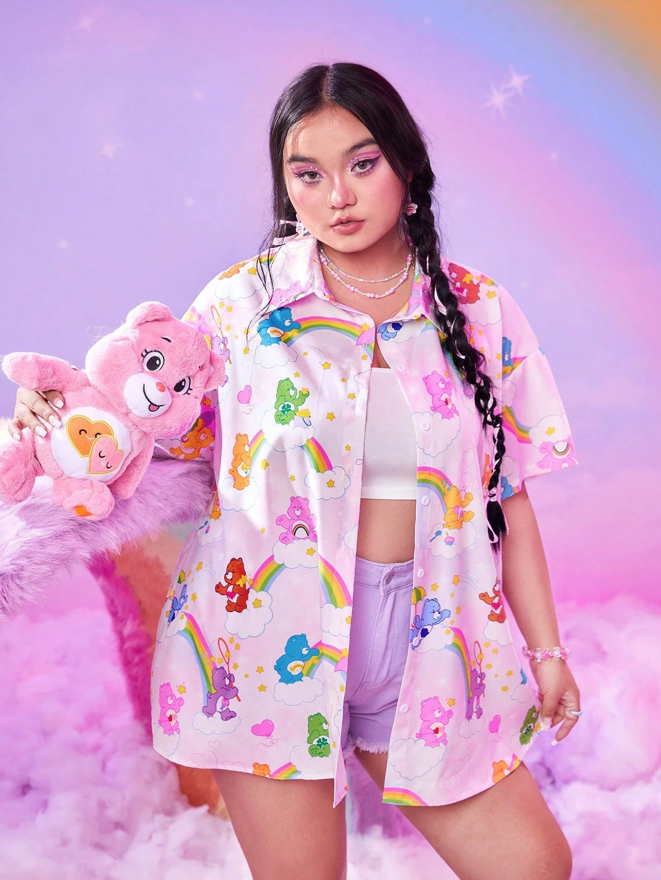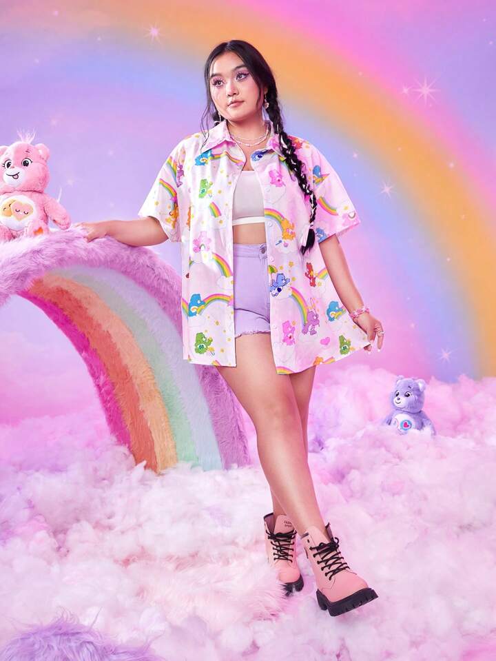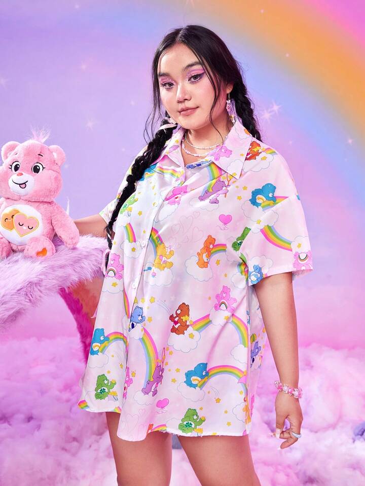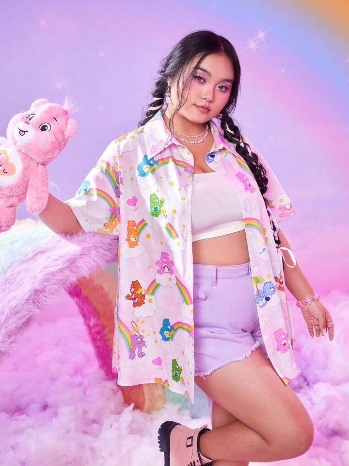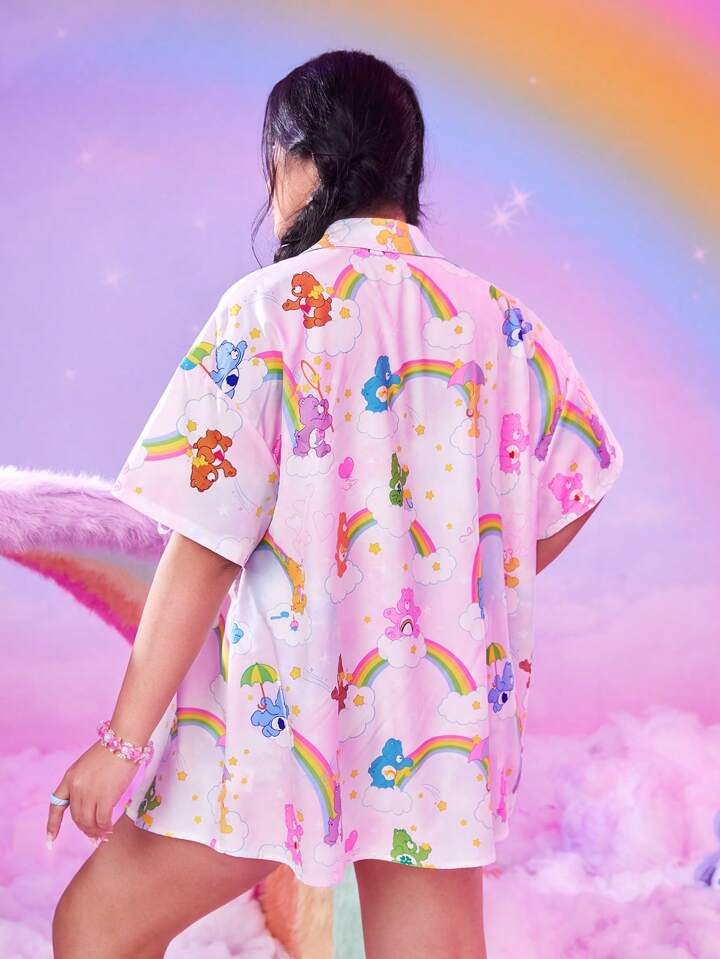 ROMWE X Care Bears Camisa con estampado de dibujos animados de hombros caídos