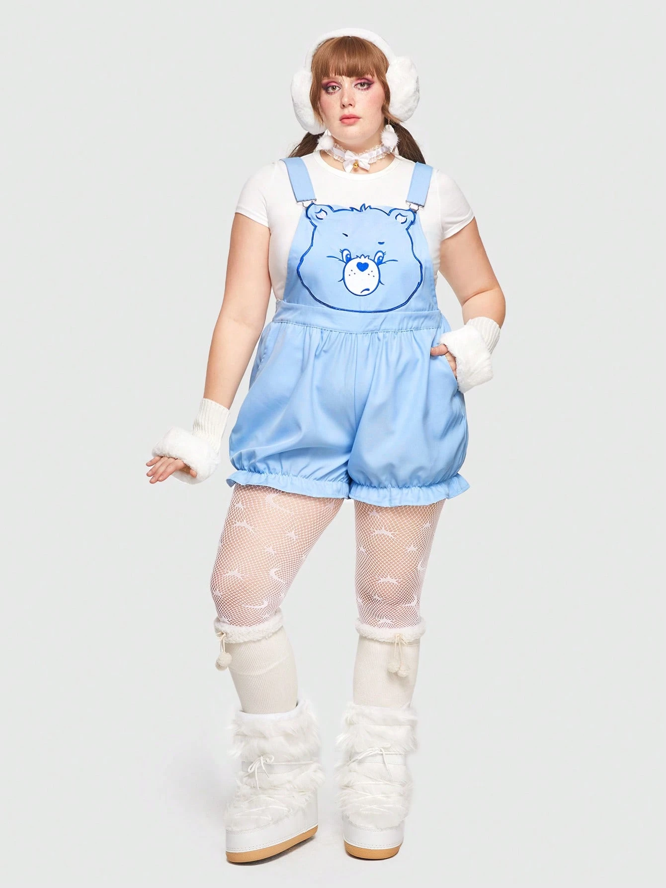 ROMWE X Care Bears Talla grande Mono overol con estampado de dibujos animados bajo con fruncido