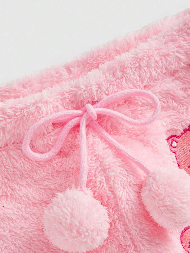 ROMWE X Care Bears Shorts de mujer con patrón bordado de oso pequeño con cuello de corbata de pompón
