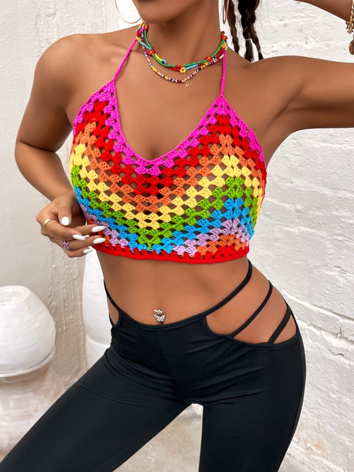 Camis Espalda al aire Cinta Rayas irisadas Bohemio
