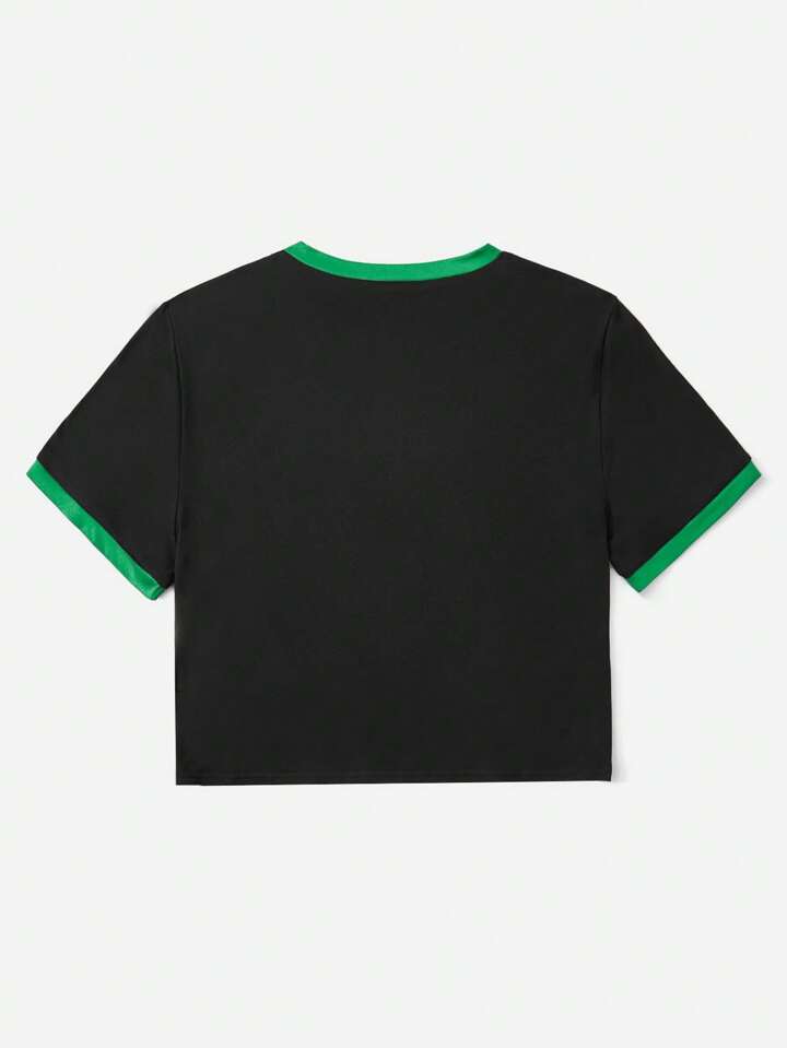 Rainydazed Camiseta unida en contraste estampado de esqueleto