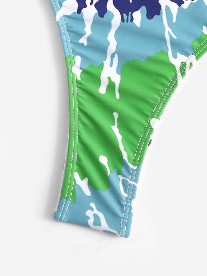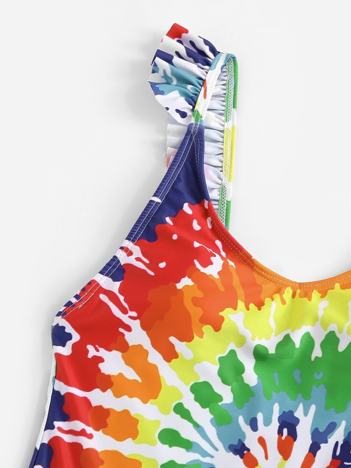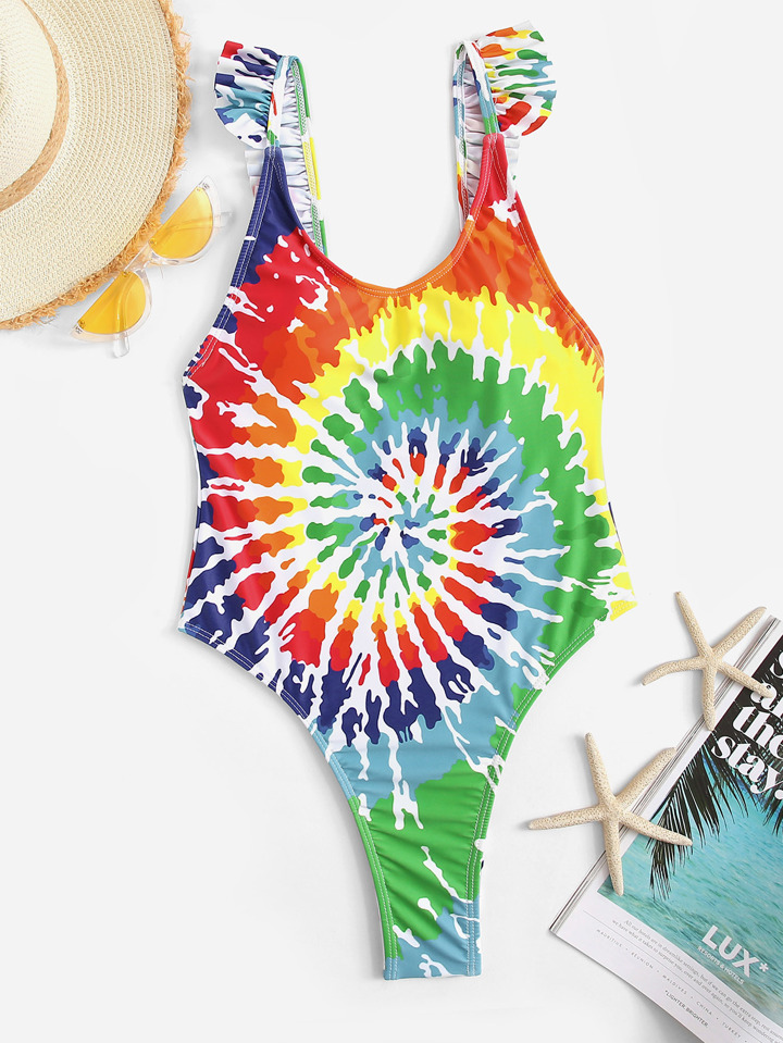 Bañador de una pieza con volantes de atar-teñir espiral al azar