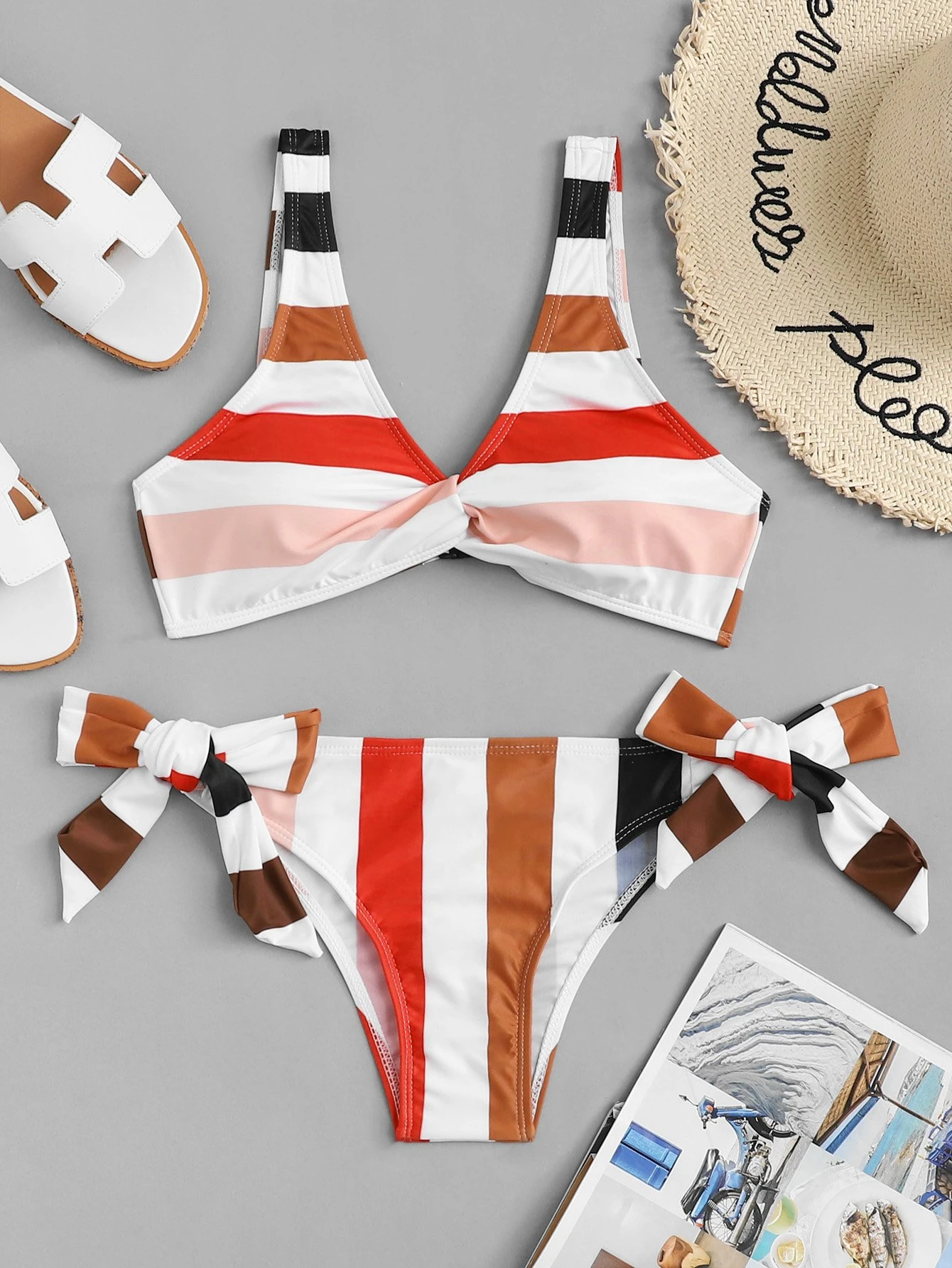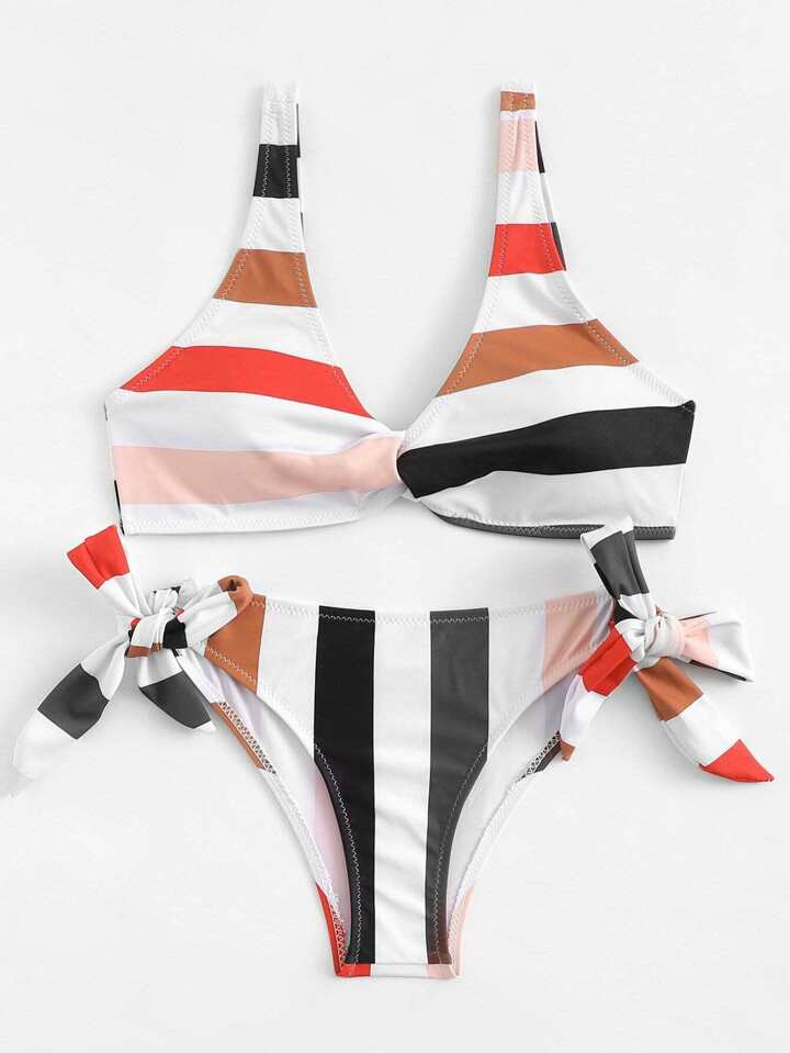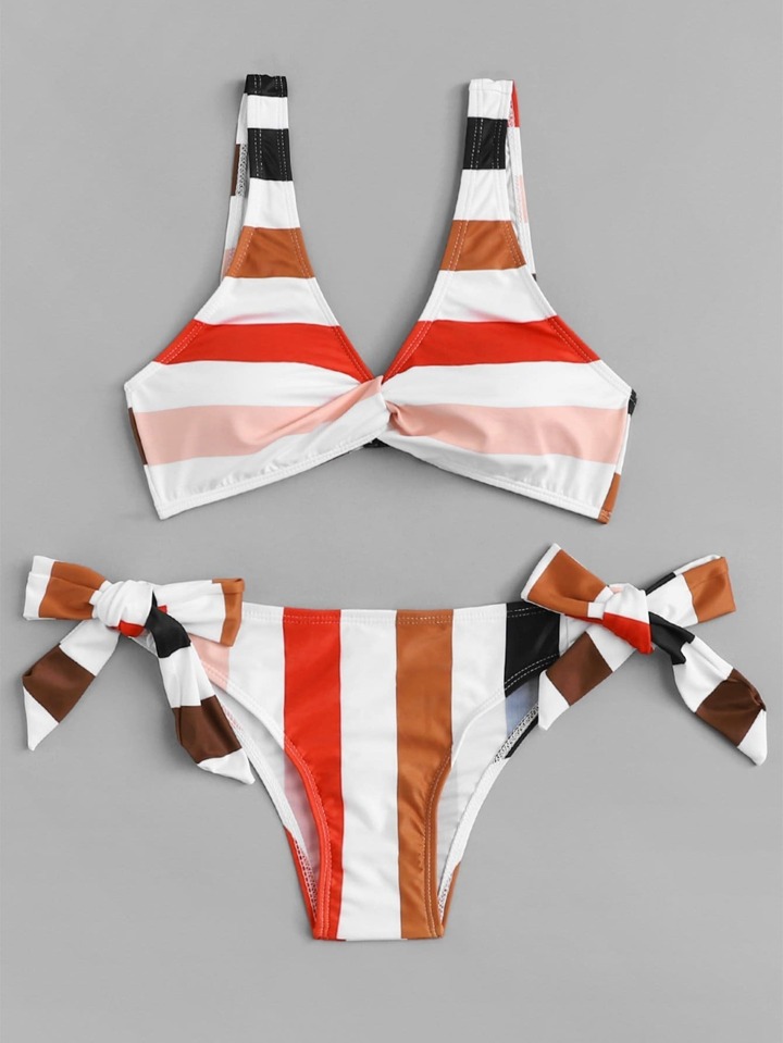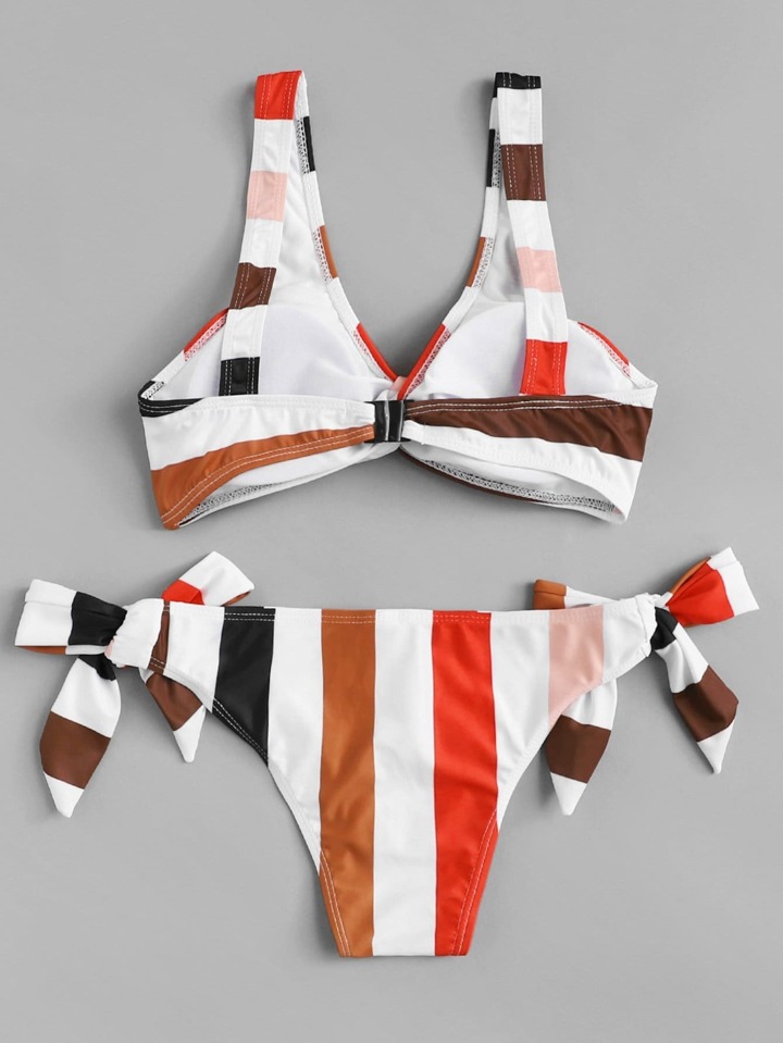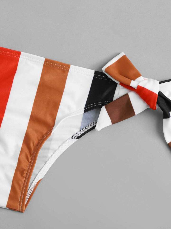 Set de bikini de rayas con cordón lateral