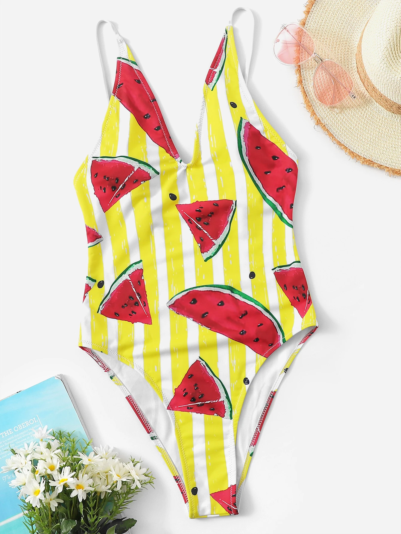 Bañador una pieza con estampado de sandía y rayas al azar