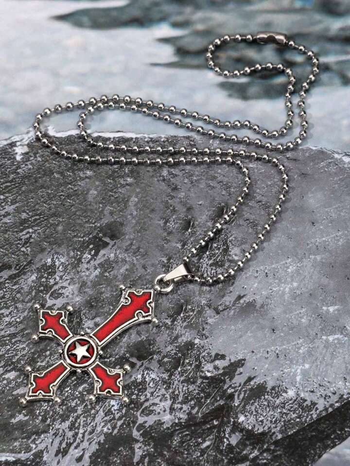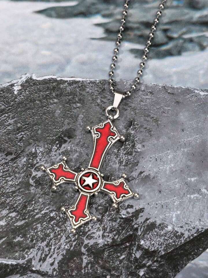 Goth rojo estilo gótico abajo colgante Cruz Collar , estilo punk Jersey Collar de cadena con colgante Cruz