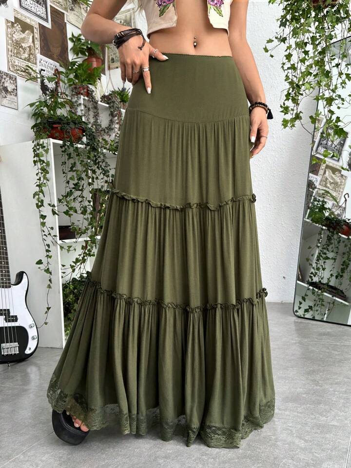 Falda con volantes y dobladillo de volantes con ribete de volantes en un estilo sólido grunge renacentista, para la escuela