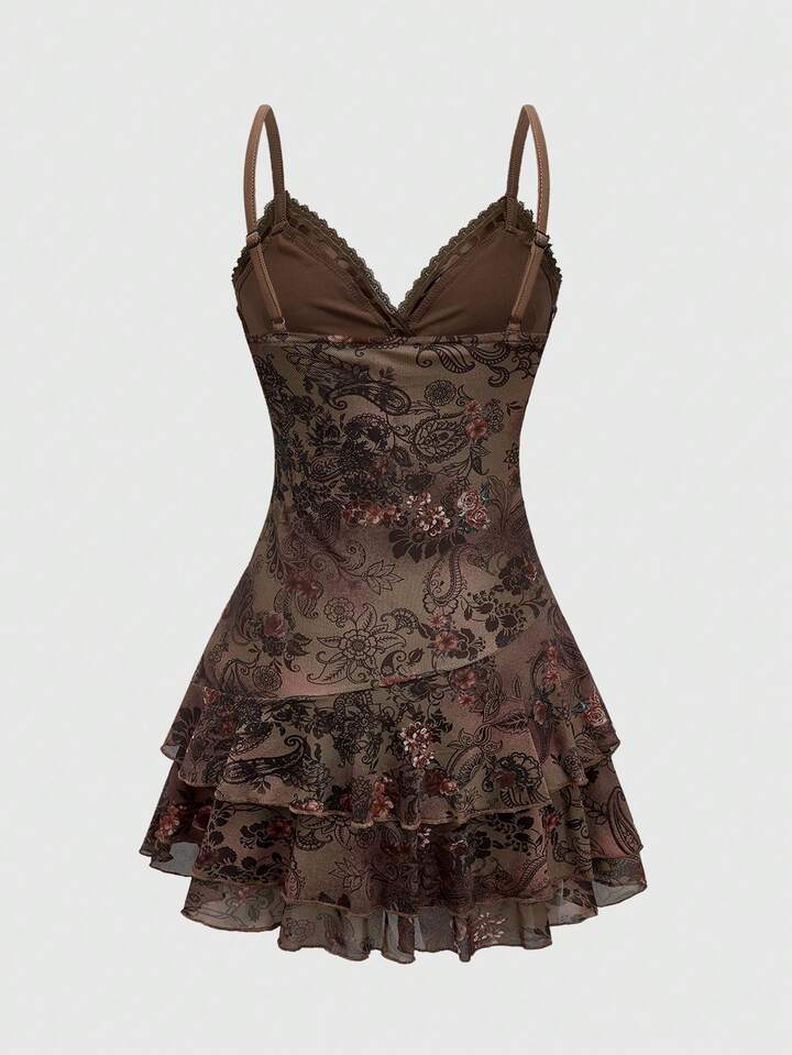 Vestido mini con estampado de paisley, volantes, cinta y encaje en estilo hippie retro para mujer de talla grande