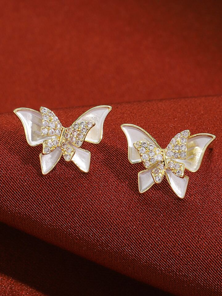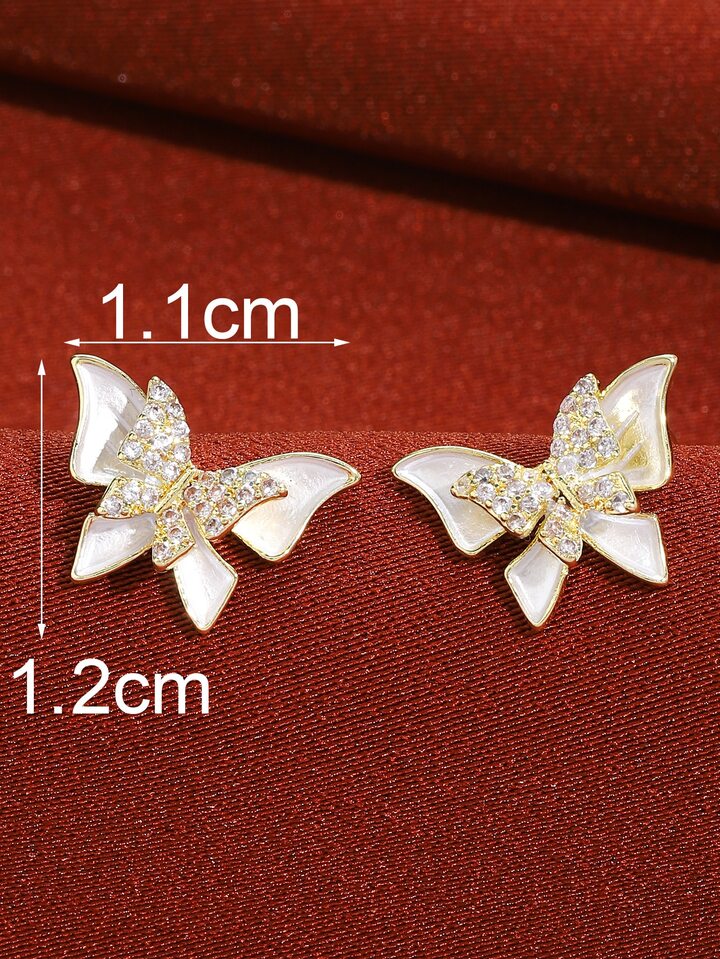 2 piezas Pendientes de tachuela con diamante de imitación con mariposa