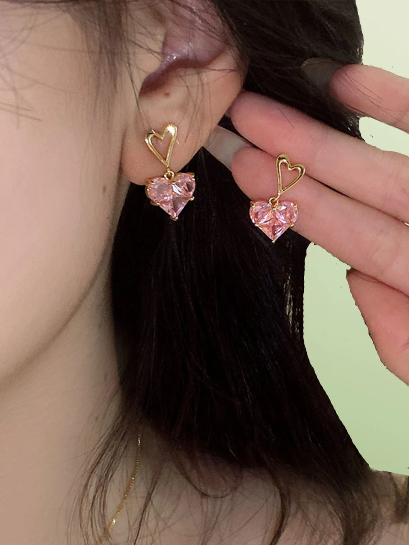 Pendientes largos con diseño de diamante de imitación con corazón