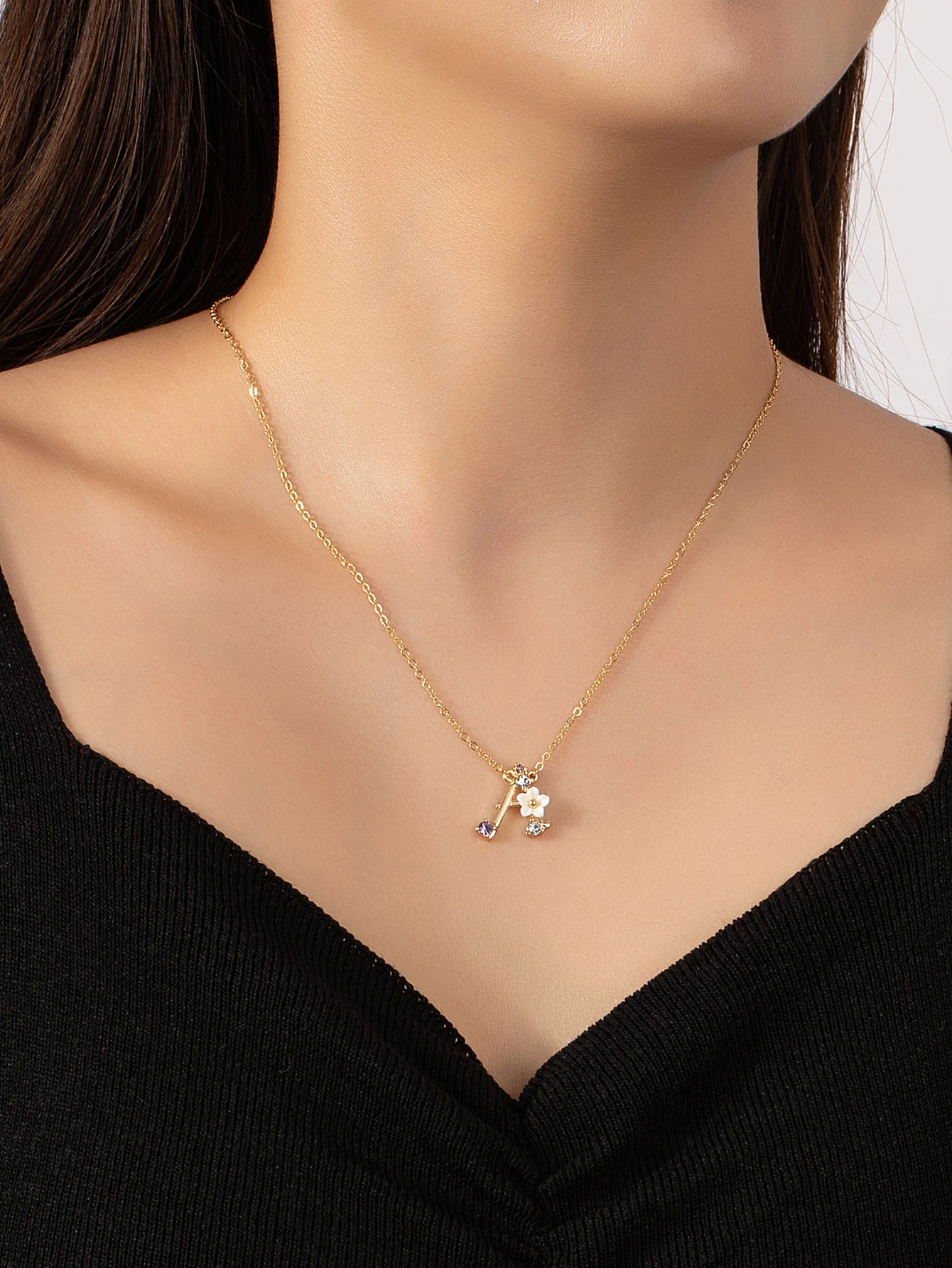 Collar con diamante de imitación & con diseño de flor con diseño de letra