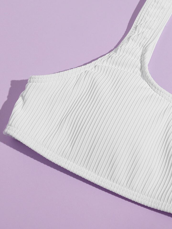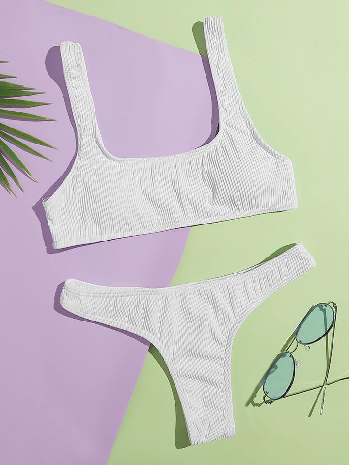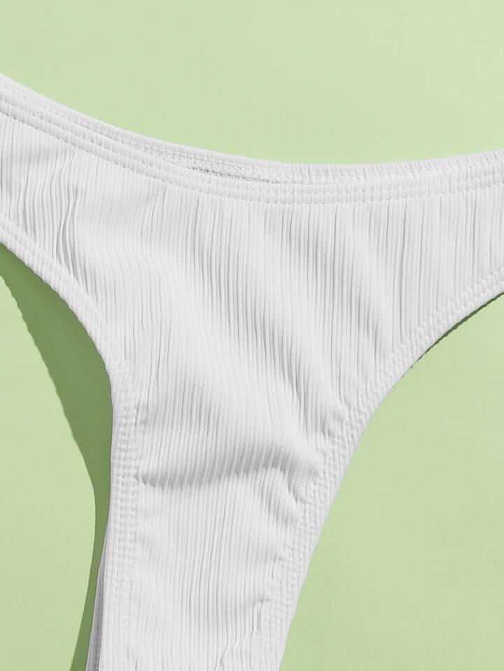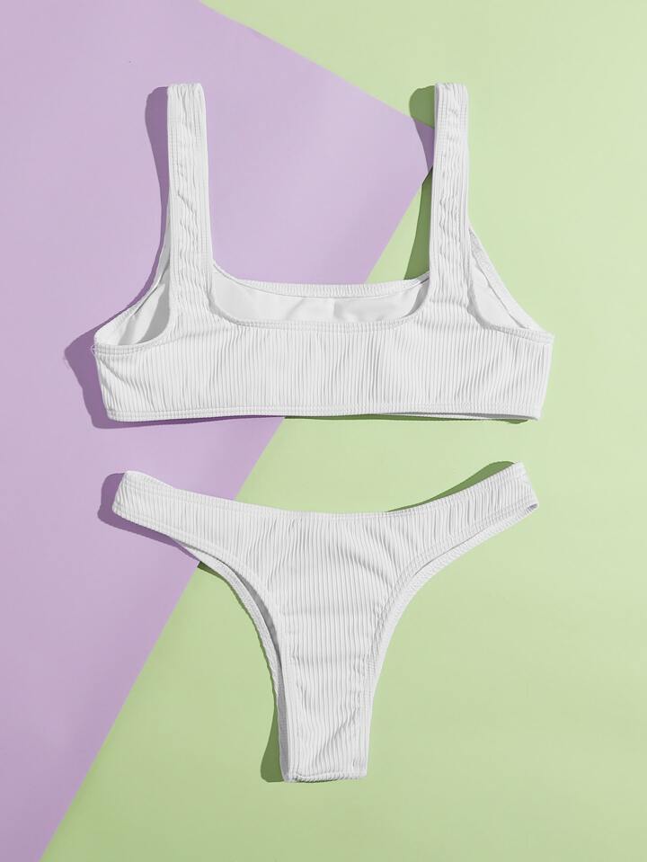 Conjunto de bikini de tirantes acanalado con tanga para verano en la playa