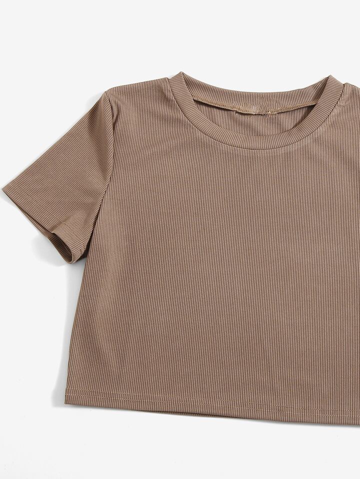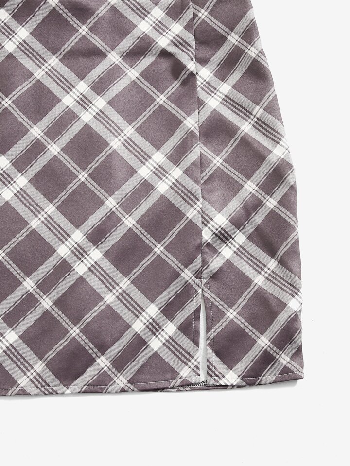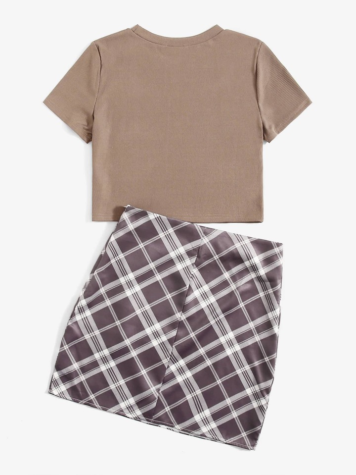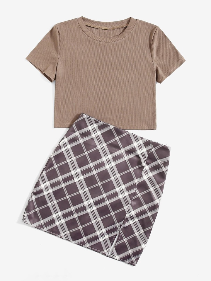 Camiseta de canalé con falda bajo con abertura de cuadros